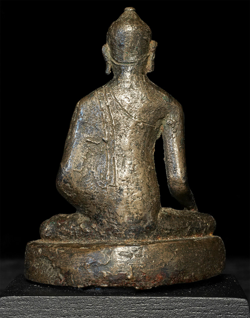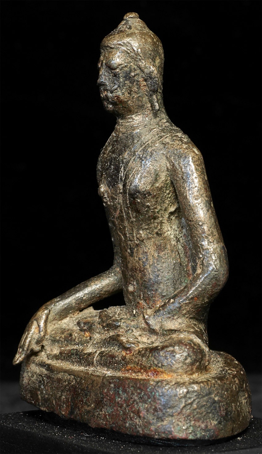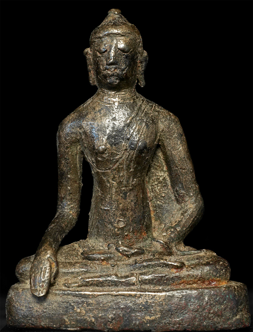 Highly uncommon Buddha- I believe that it is a prototype SE Asian Buddha, attempting to emulate a Sri Lankan style. I am estimating 11th to 14th century, but I do not know for sure the age or origin. Sits 3 inches tall, 4 with the base. No one I have shown it to in 20 years has seen a comparable one.