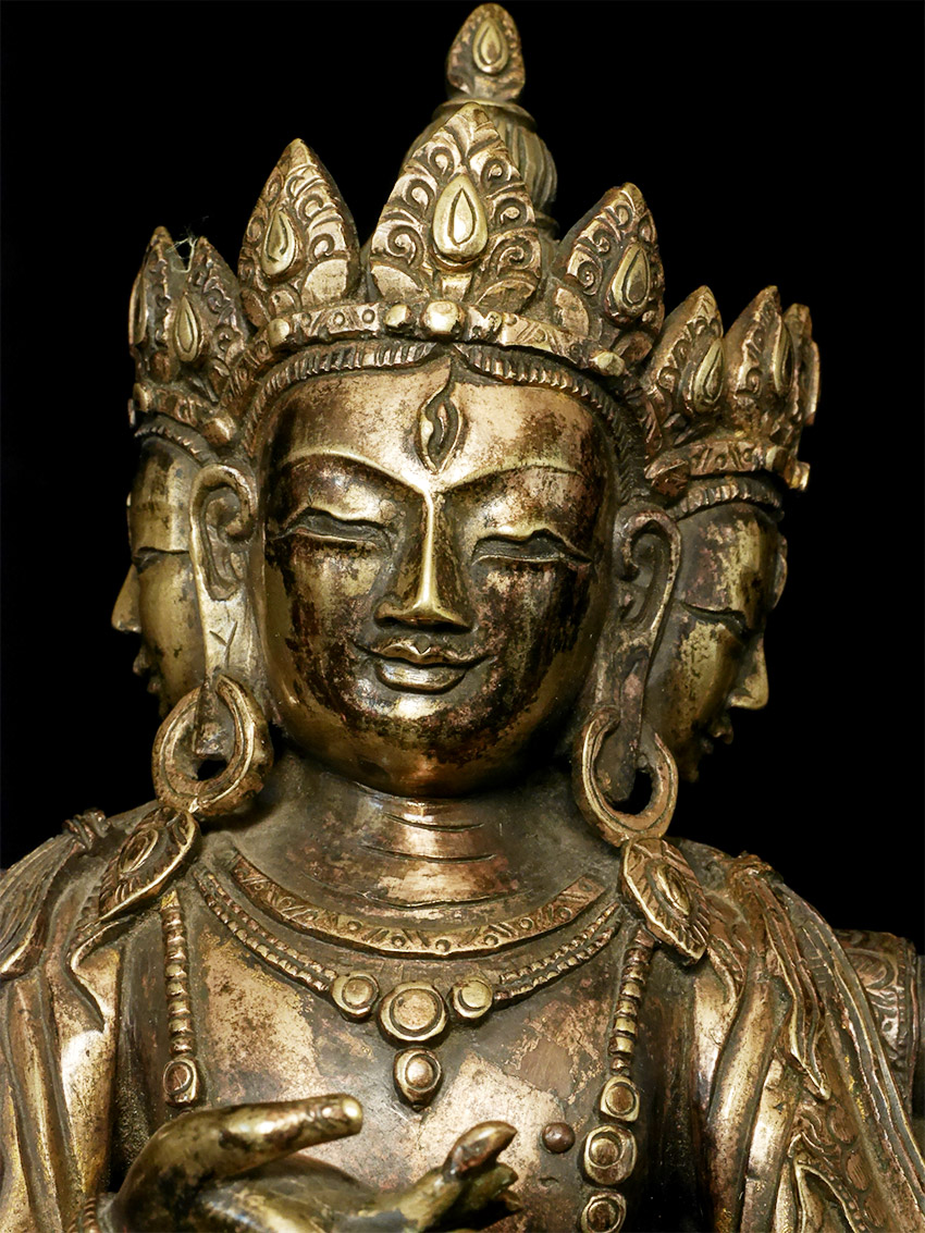 Antique Tibetan 8 armed Bodhisattva. Very vinely cast and sculpted. Sits 6 5/8 inches tall. Very beautiful face. Wear to the gilding, sword blade missing, and no longer consecrated- otherwise superb. Likely 18thC. Purchased from a highly reputable auction house by the previous owner.