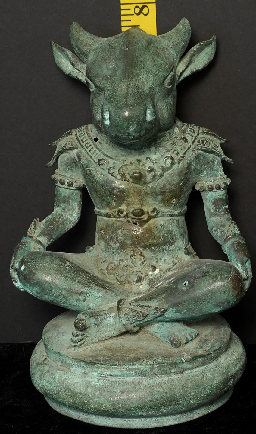 Delightful old Indonesian Temple Figure from an extensive Autralian collection of a noted collector. Probably early 20th century. Original casting flaws, otherwise great condition. Sits happily at 7.5 inches tall