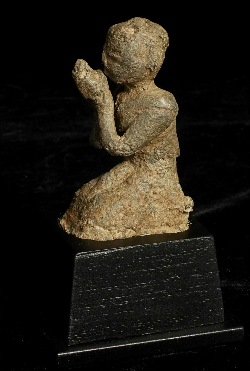 Early Burmese Monk. Solid Cast- unsure of alloy. Powerful ancient relic. Unsure how to date, but likely 1,000 years old. Three inches tall, 4.5 inches on custom stand and very heavy.