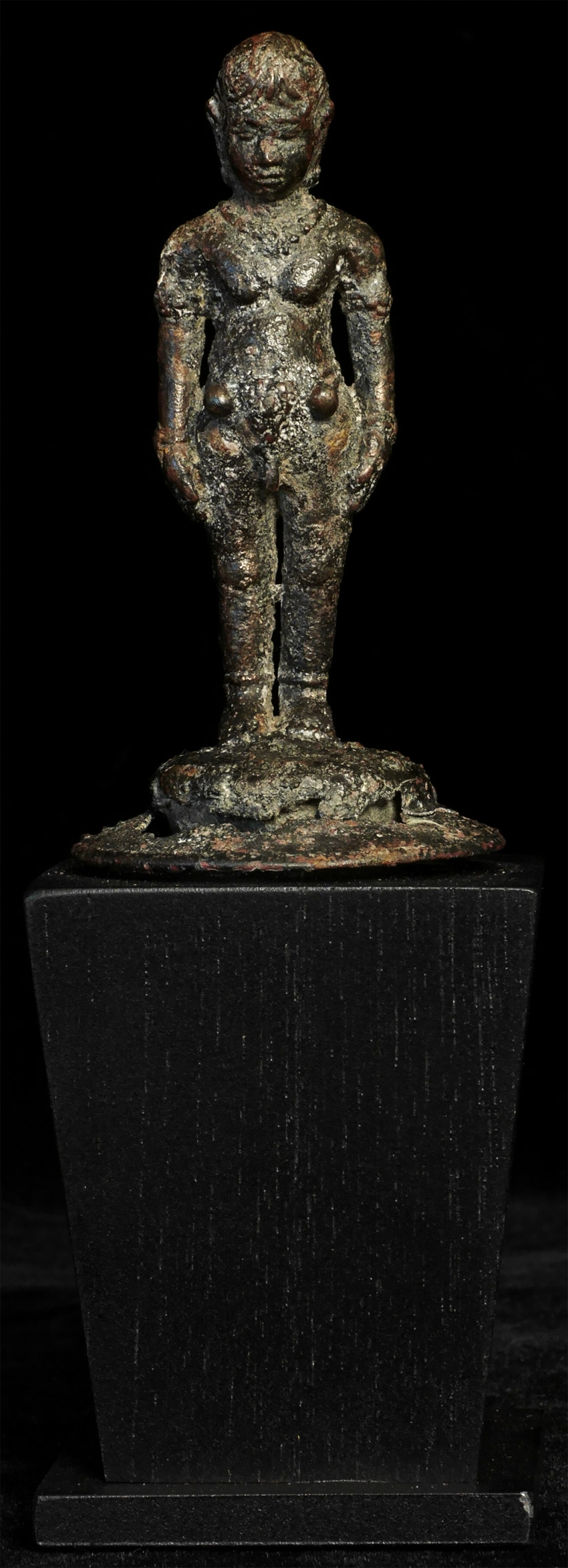Javanese 14th/15thC bronze figure. I believe this is a depiction of a boy-king or prince. Nice example, with superb casting/sculpting and a beautiful original patina. Rare type. Stands 4.25 inches tall and 7 inches tall on its custom base.