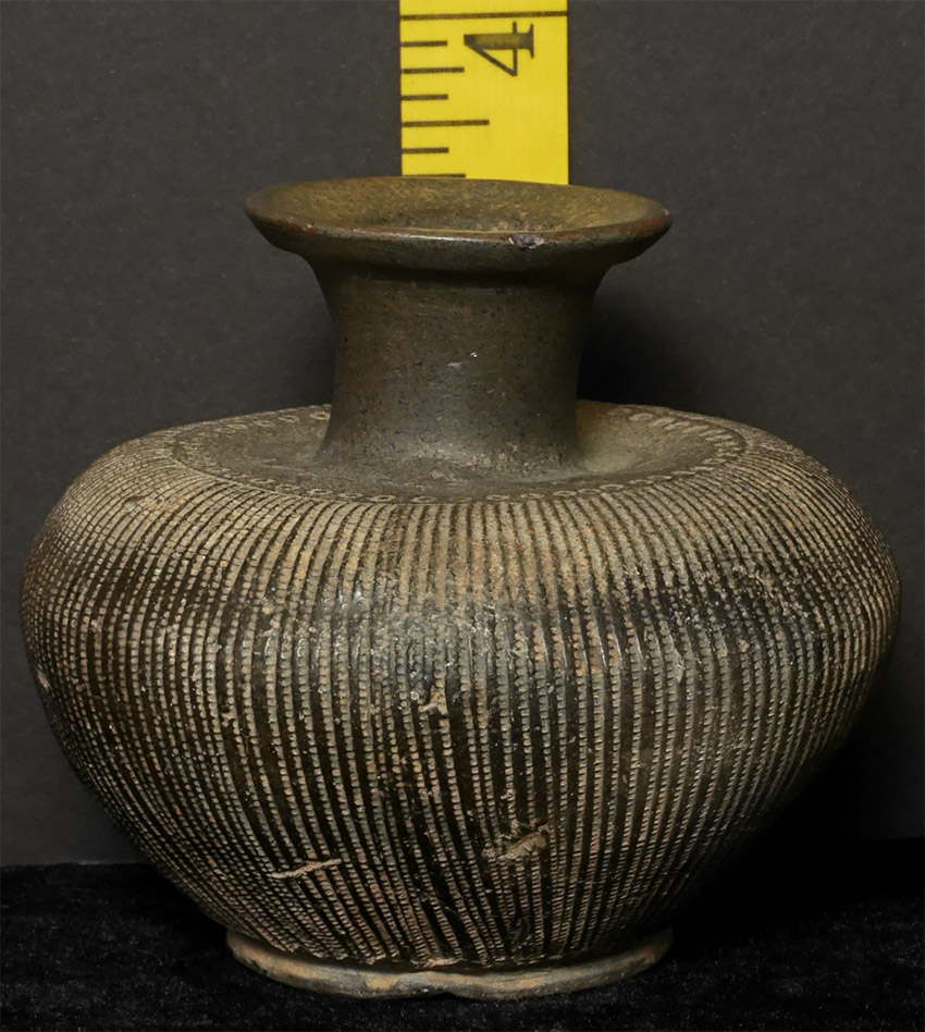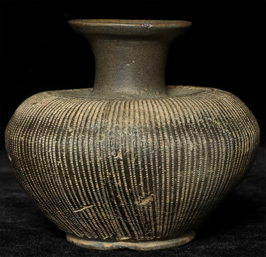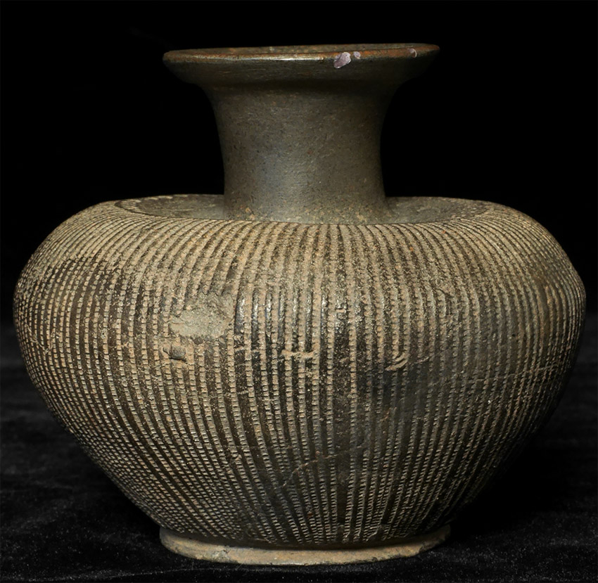 Early Korean Vase. Size is 3.25 inches tall. A few chips and dings.