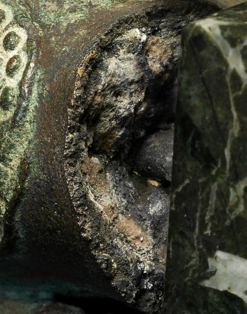 Fine Thai Ayuthaya Period (17thC) Buddha Head with Christie's label. Head alone is 3.5 inches, height on attached stand is 5 3/8 inches.