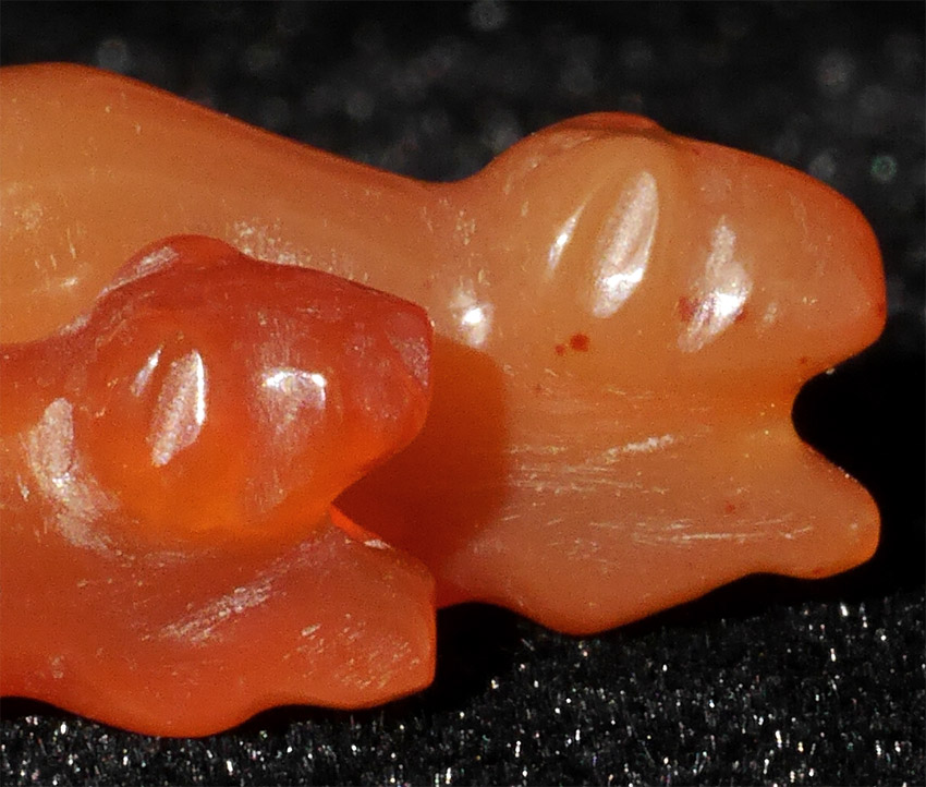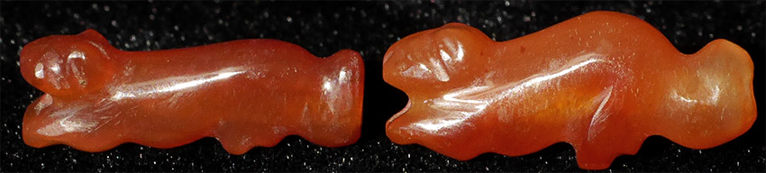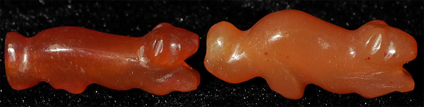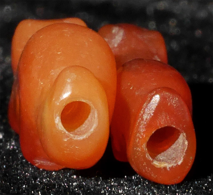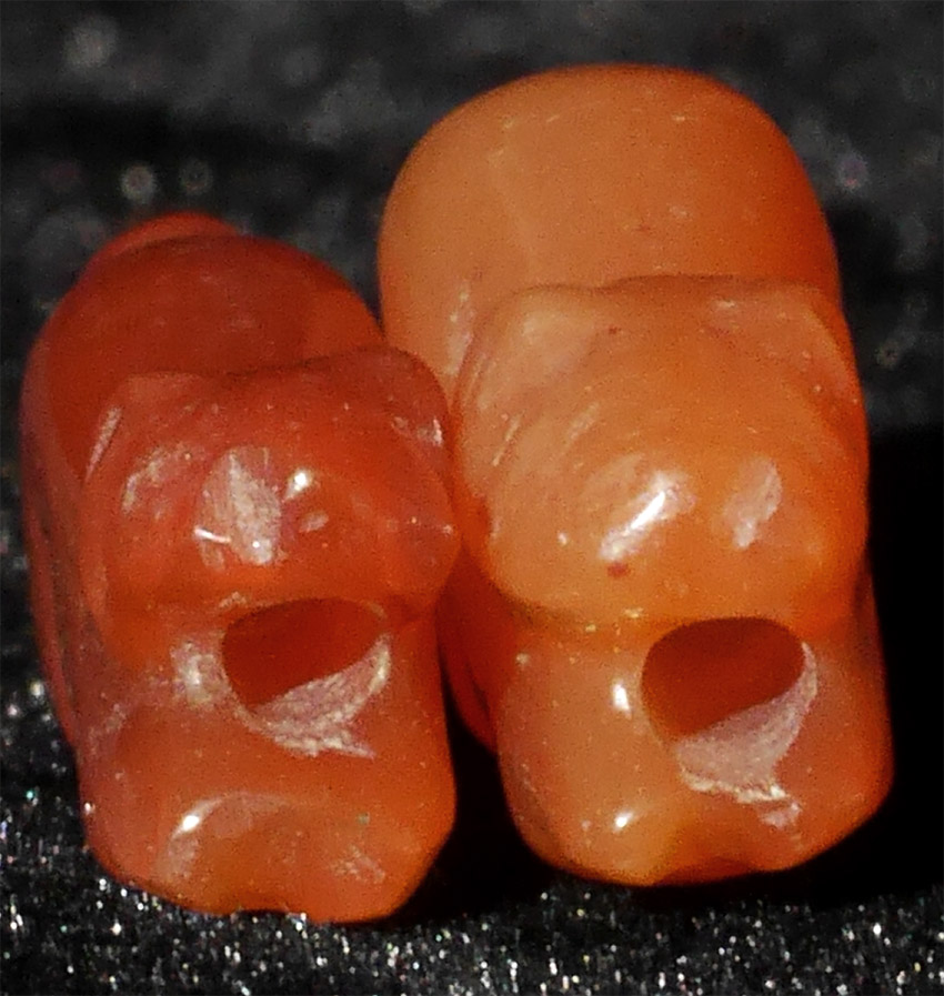 Pair of early Pyu Beads are 7/8 long. As with all of the Pyu beads listed now and in the past, from a huge old bead collection, most of which was sold to a bead museum. These are outside my area, so I do not know how to date, but probably over 1000 years old. The beads sold over the past few years from the is collection have gone to collectors knowledgeable in early bead who have been happy with their purchases. The beads being posted over the next month are the last of the group in my possession.