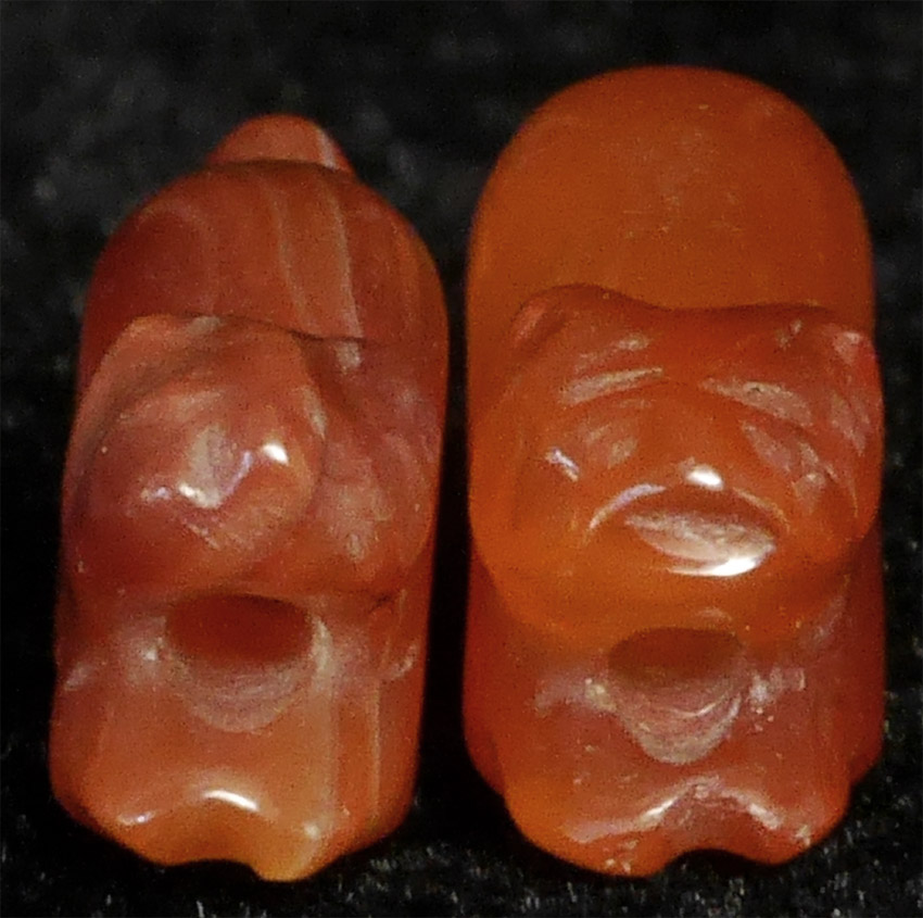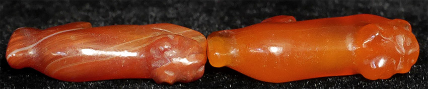 Pair of early Pyu Beads are .75 long. Beads are approximately 7/8 inches long. As with all of the Pyu beads listed now and in the past, from a huge old bead collection, most of which was sold to a bead museum. These are outside my area, so I do not know how to date, but probably over 1000 years old. The beads sold over the past few years from the is collection have gone to collectors knowledgeable in early bead who have been happy with their purchases. The beads being posted over the next month are the last of the group in my possession.