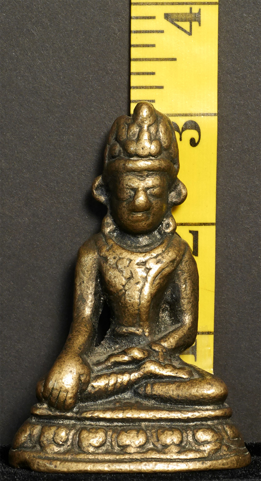 Antique solid-cast Indian Pala, Kurkihar. Possibly as old as 1,000 years old have not seen the solid-cast type before so unsure of the date. Great feel. Sits 3-1/8 inches tall.