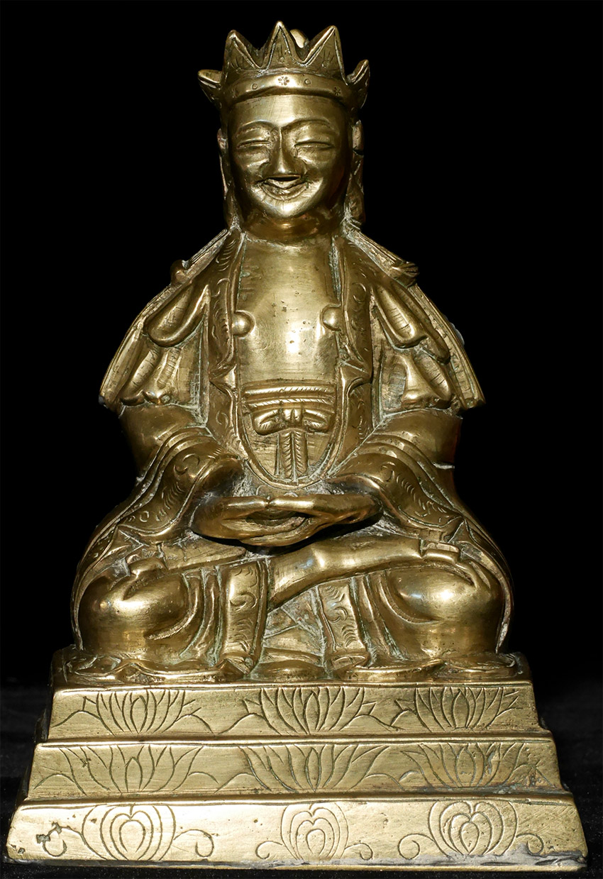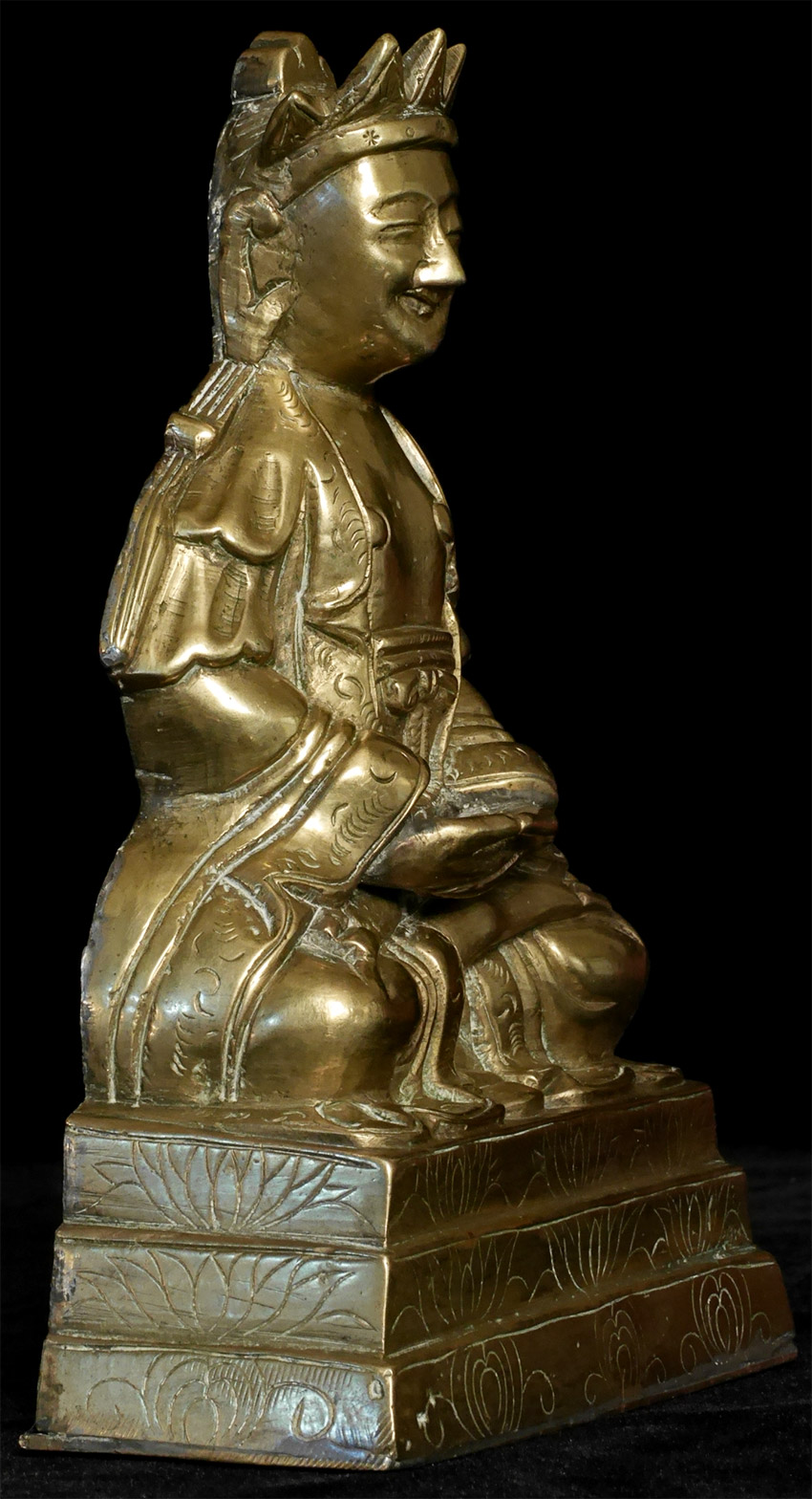 Vintage/Old Chinese Bodhisattva with a very distinctive smile. Sits 6.75 inches tall.