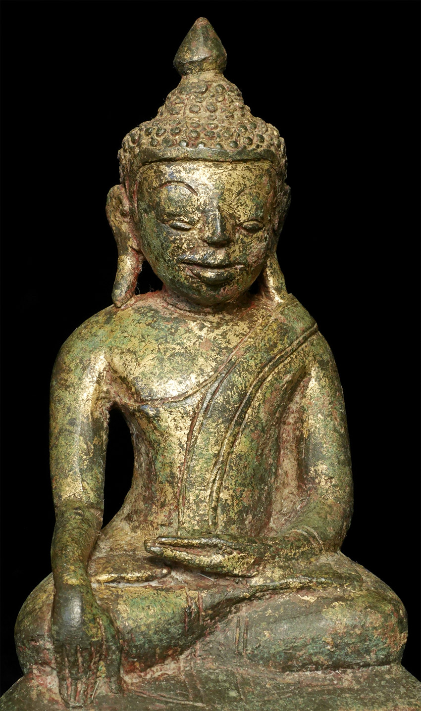Beautiful 17thC Burmese Mon style Buddha with a lovely and complex patina. Sits 6.25" tall