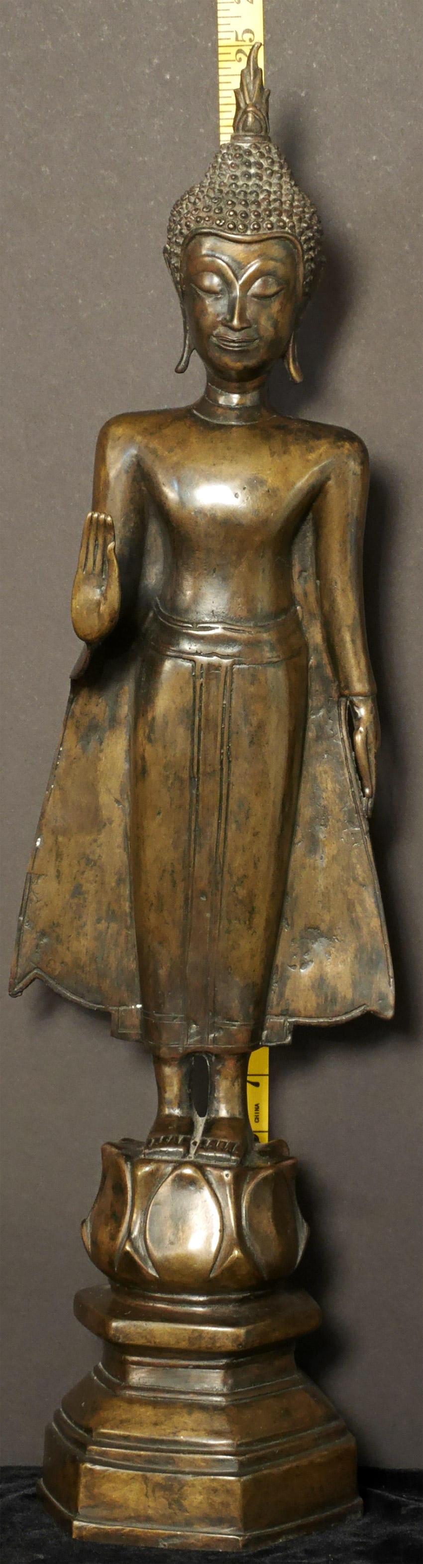 Beautiful, large Laos Bronze Buddha from a wealthy east coast estate. Has a matching one (#7474) that had a slightly different face and a completely different mudra (hand gesture). Stands 25.25 inches tall. Would be sold by most as 17/18thC. I believe this is likely 20th C.