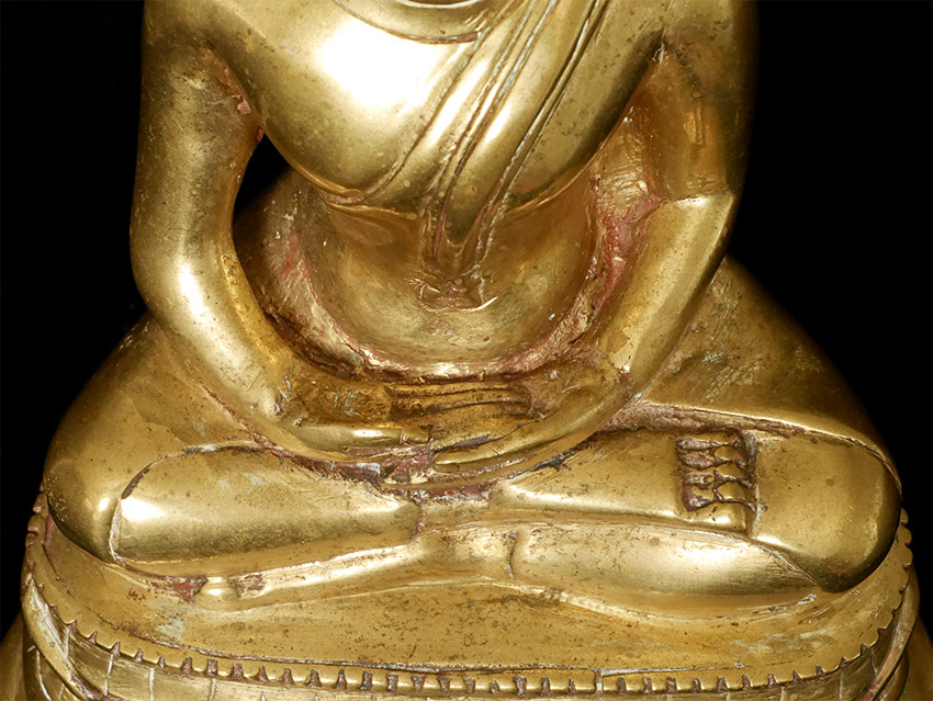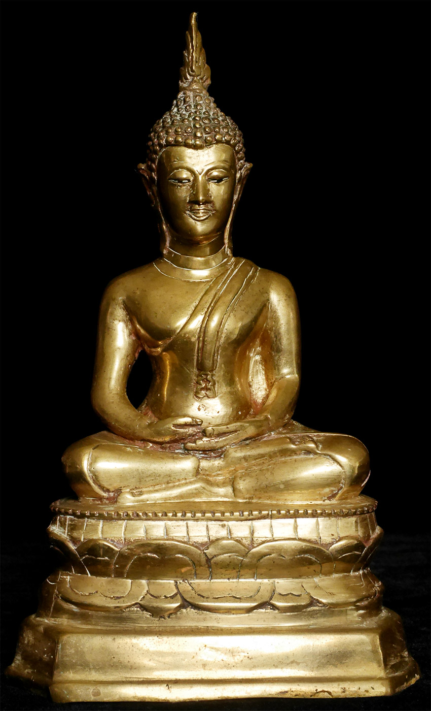 Early 20thC Thai bronze Buddha. Very good face. 9" tall.