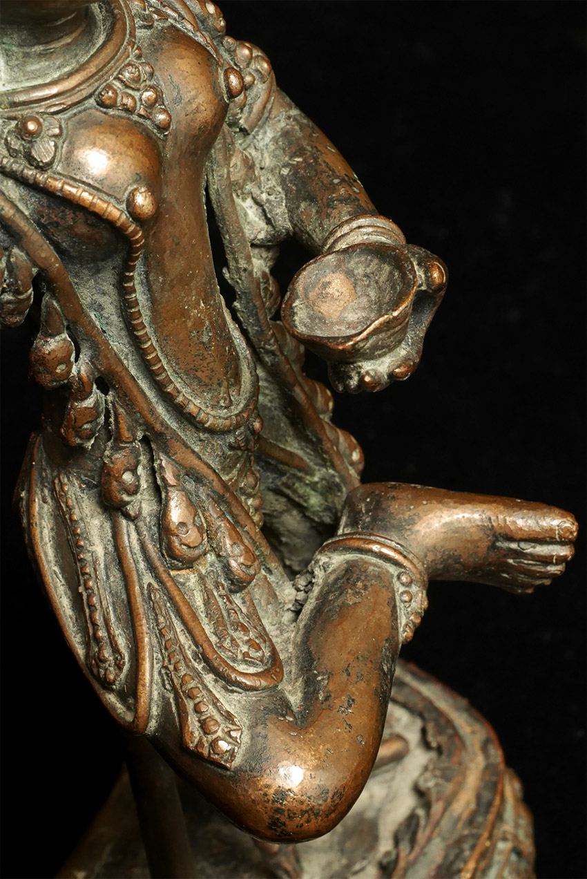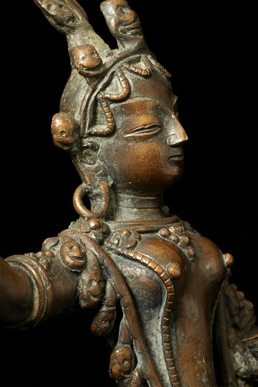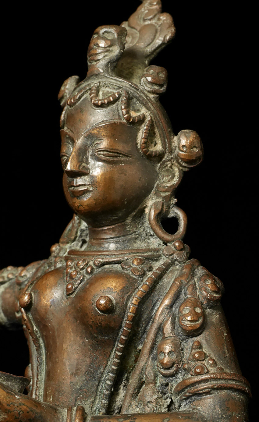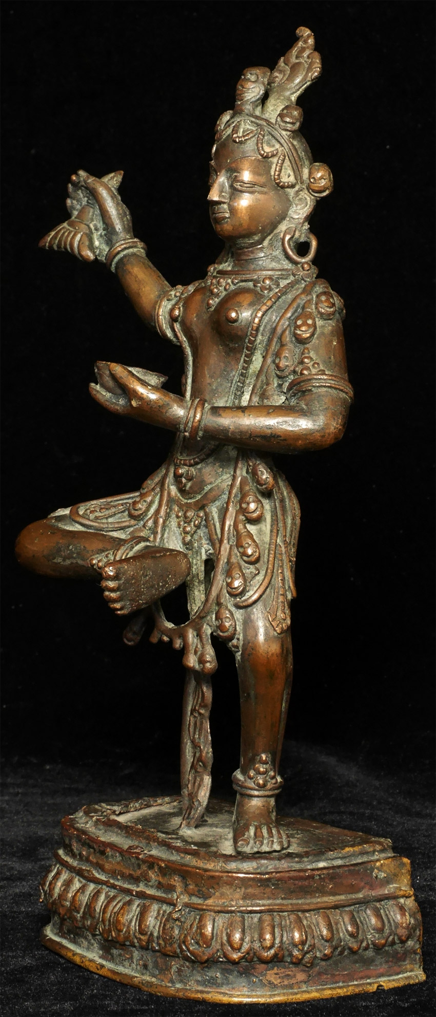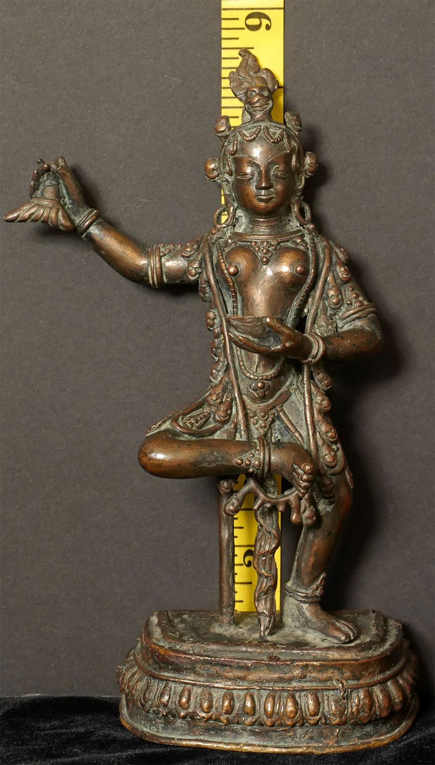 Antique Nepalese bronze Dakini. Beautiful face.. Stands 8.5 inches tall.