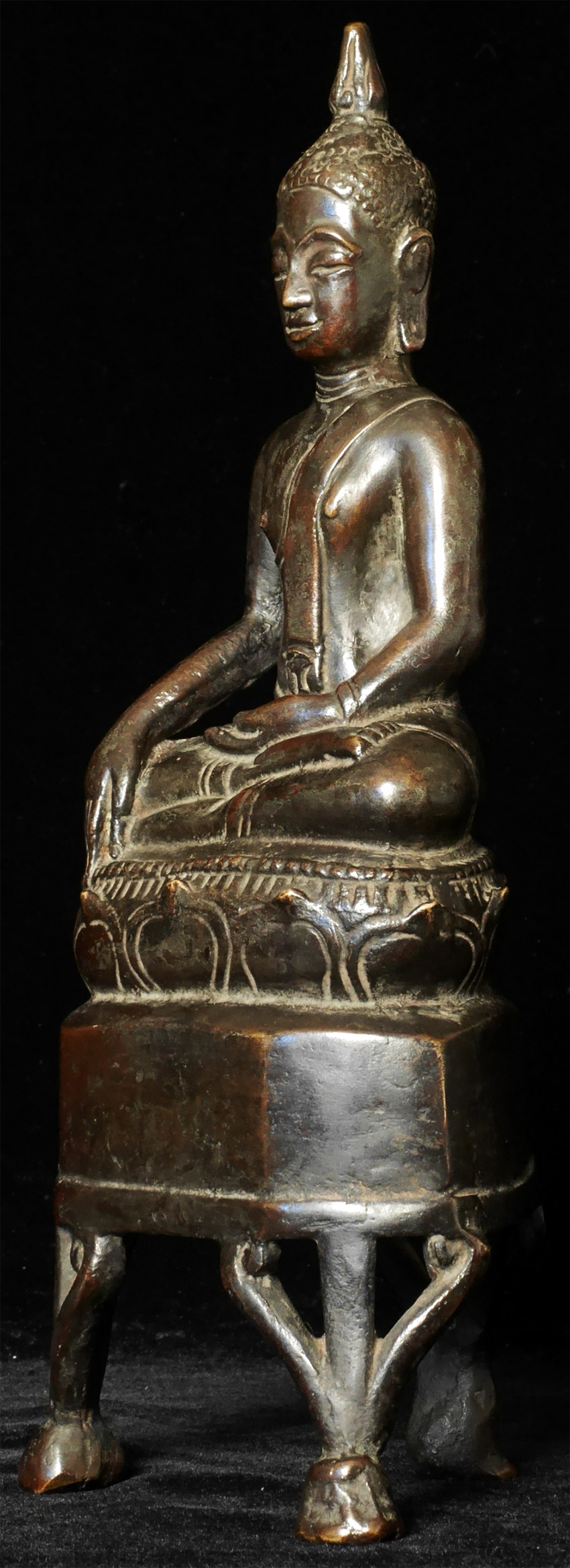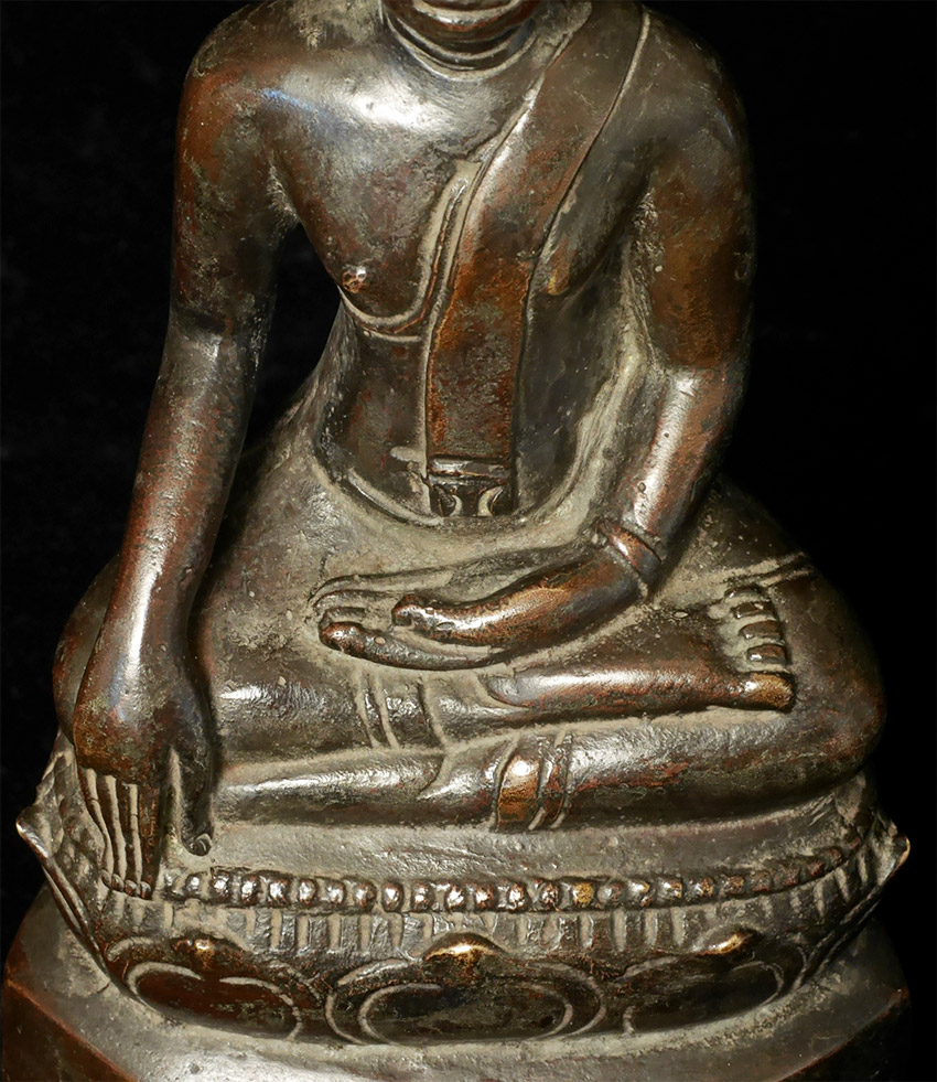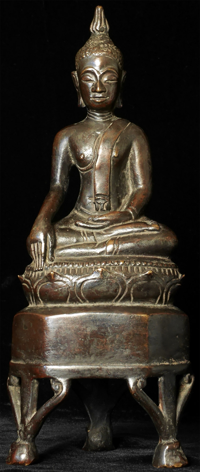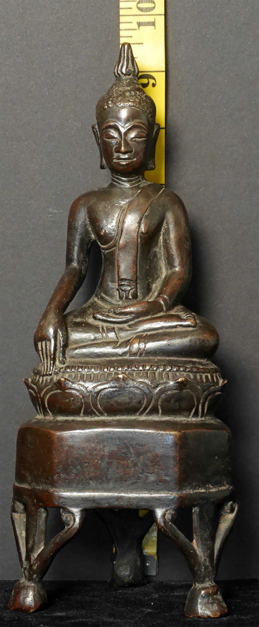 Superb Ayuthaya period Thai Buddha (may be from Northern Thailand) in the range of 300 to 400 years old. Great face, fine casting, great condition- this one has it all. Feet are an uncommon feature. Stands. 9.5 inches tall. Hard to find so nice.