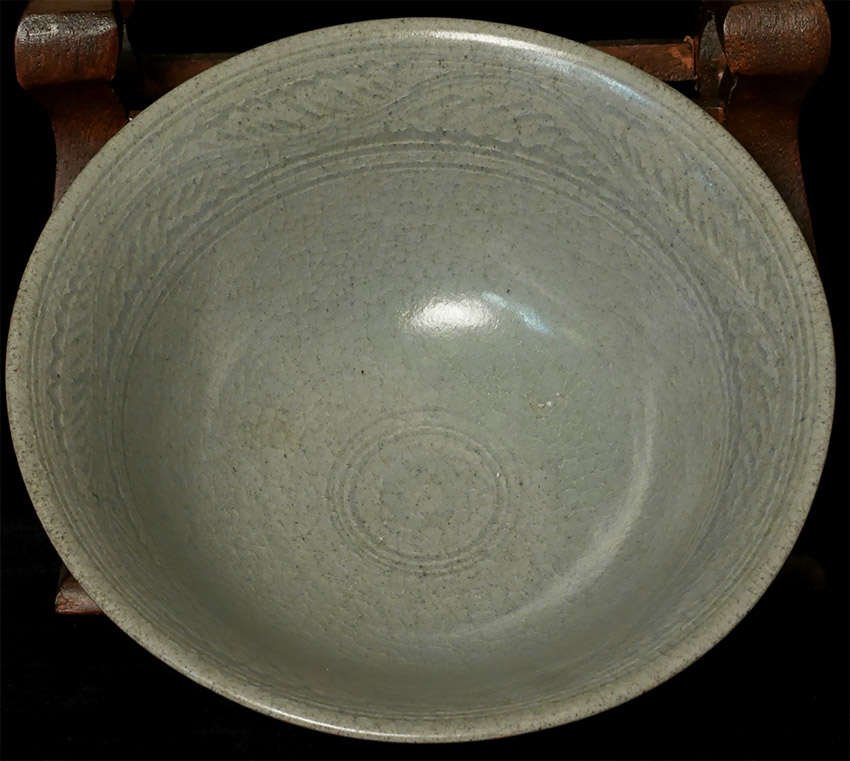 Very fine and large Thai Sawankalok Bowl. Beautiful Celadon color, and lovely design work.Bowl is 3 3/5 inches tall, has a diameter of 7.75 inches