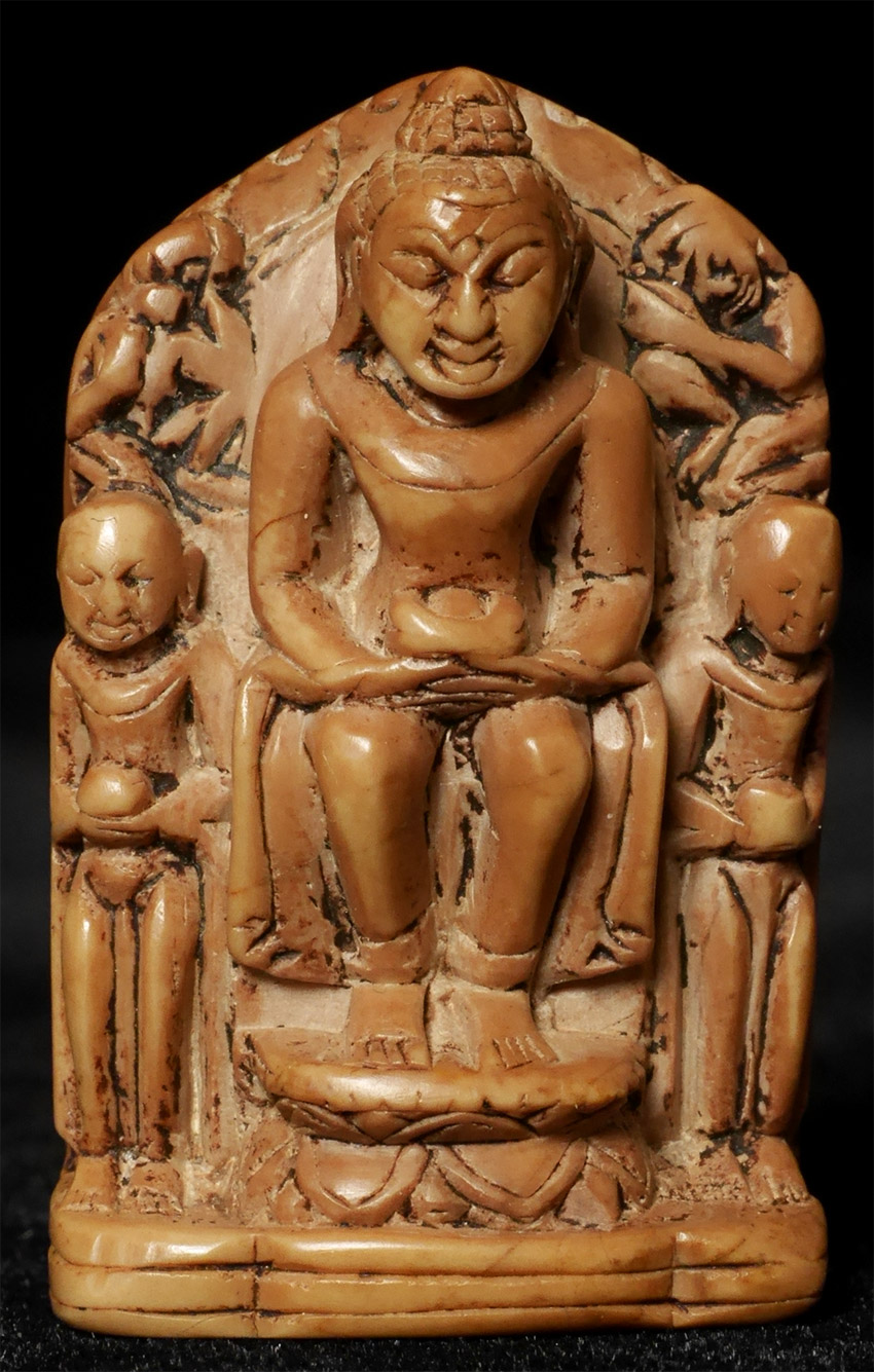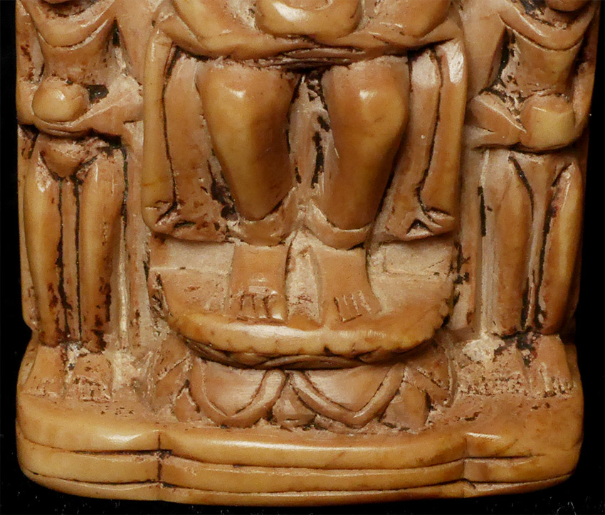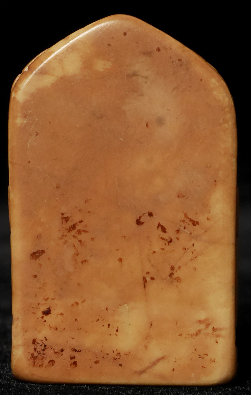 Classic, well carved Pagan Buddha Carved in Andagu stone. Stand only 1.5 inches tall, but larger than life. 1.5 I've seen very similar Buddhas like this in the middle of a much larger andagu stele of the Buddhas life (6 to 8 inches) tall. (They can go up to $60,000 to $80,000 in top quality), but have never seen period andagu Buddhas of this type on the market. 700 years of touching has left a great patina.