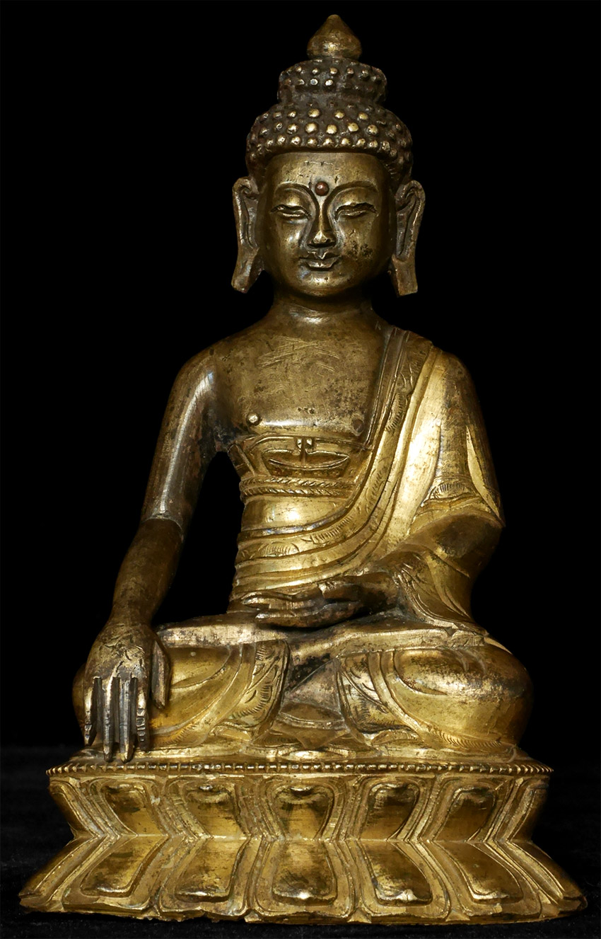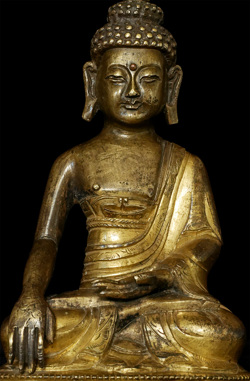 Antique (18/19thC) Mongolian Bronze Buddha. Sits 6.25 inches tall. Classic example if his type.