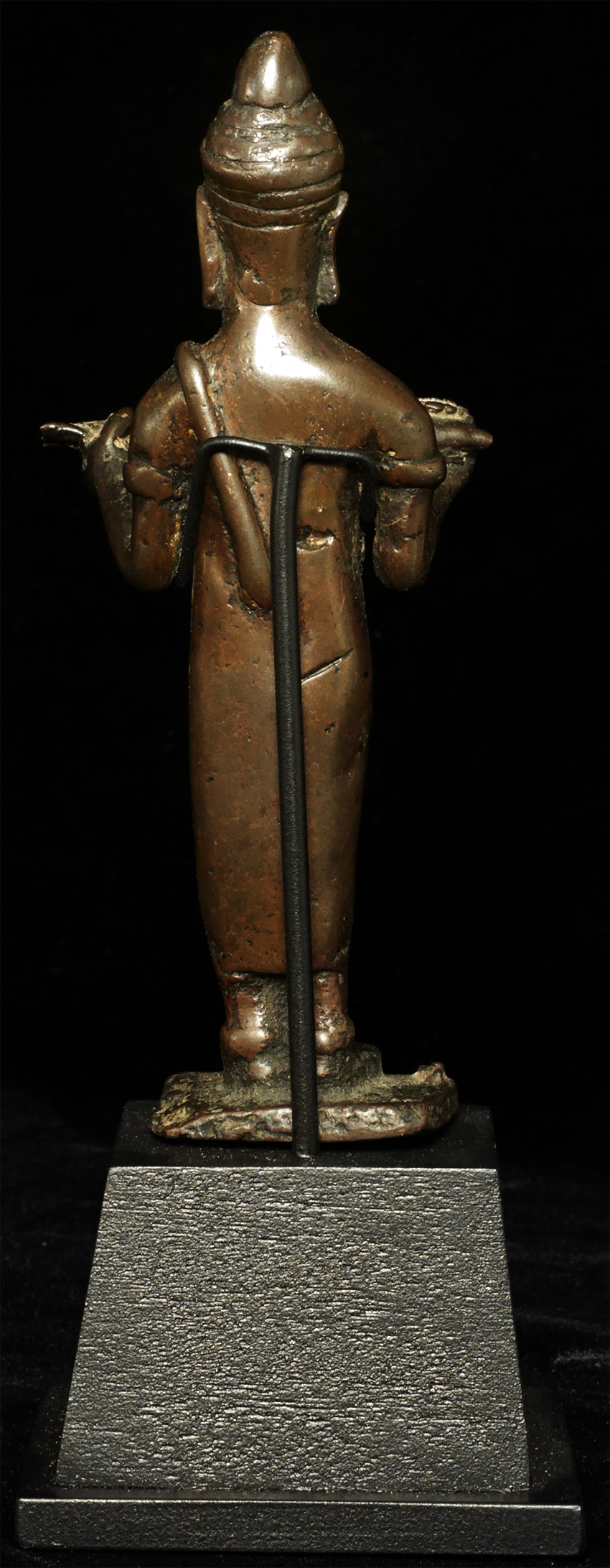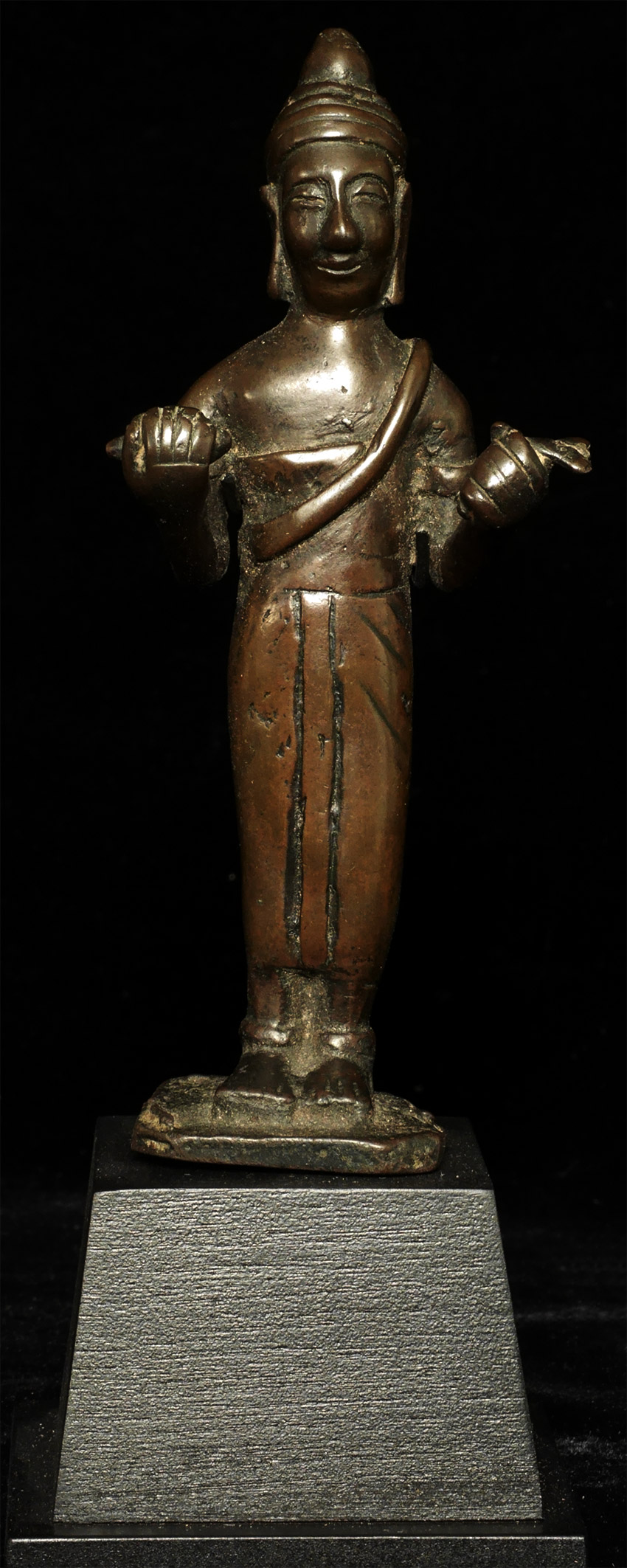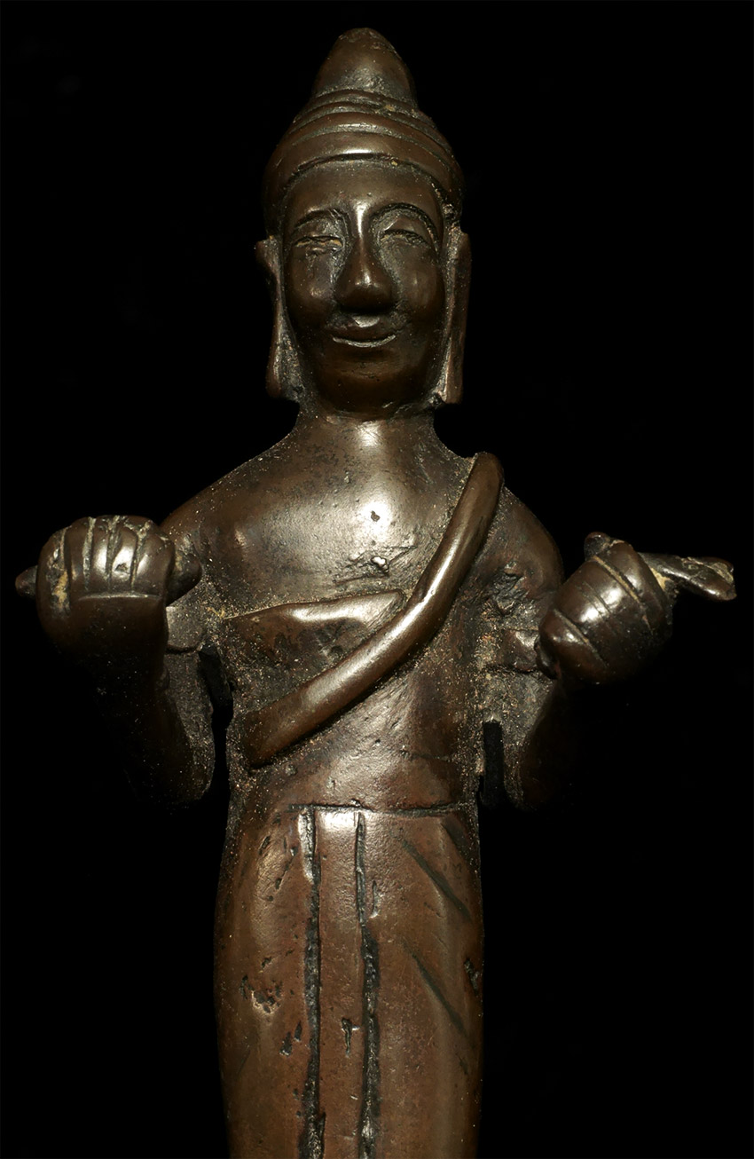 Sweet old Laotian or Thai bronze devotee. 5.25 inches tall, 7 1/8 inches on custom stand. Probably early/mid 2othC.