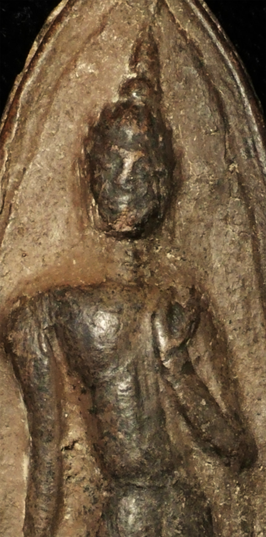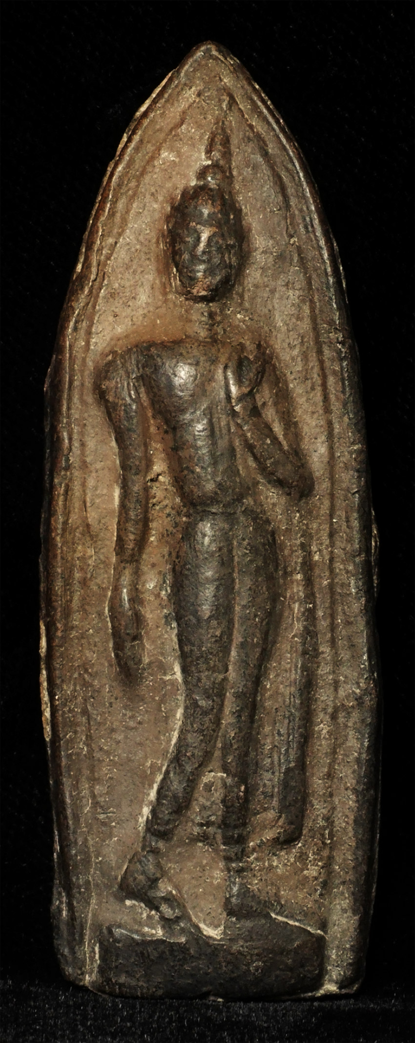 Probably 13/14thC Thai Walking Buddha Amulet in the classic Sukothai style. Stands 3 inches tall.