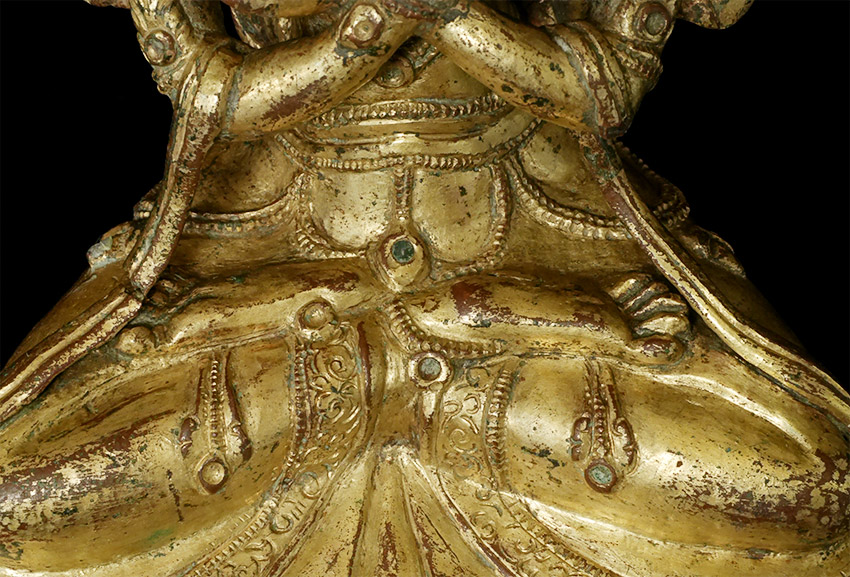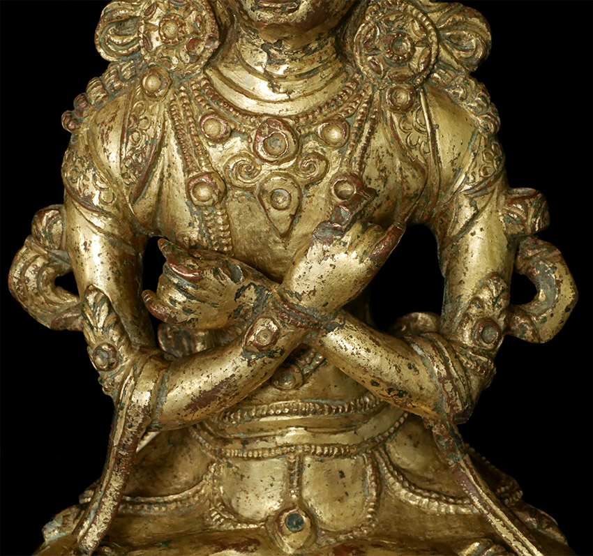 16thC or earlier Nepalese Bronze Bodhisattva. Lovely detail and overall graceful in form. Some damage/repair to the face. Sits 5 7/8 inches tall, height on custom base is 8.5 inches.