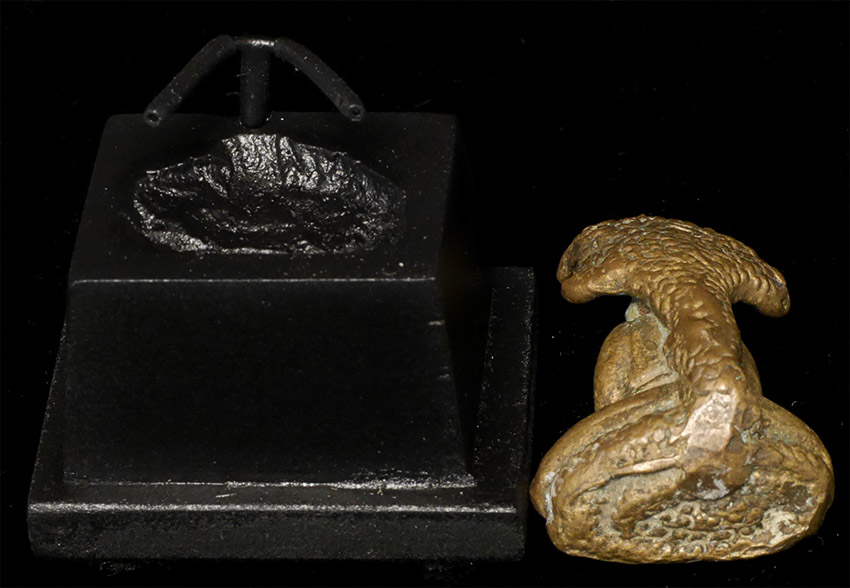 Bronze, 1-5/8 Inches Tall, 2.75 inches on custom stand. Rare type, solid cast.