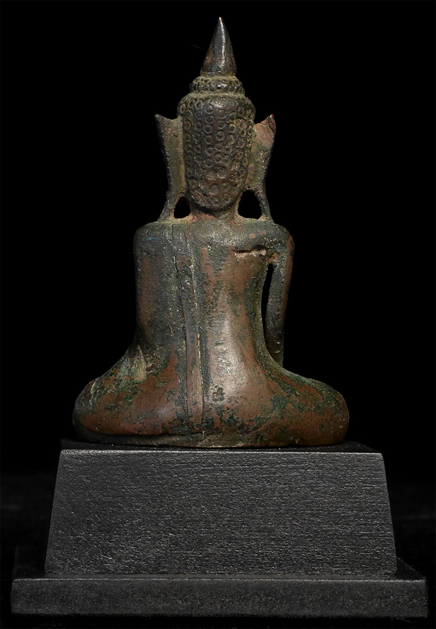 A very fine 17th or early 18thC Cambodian Buddha. Originally would have sat on a separately cast base. This piece sits happily at 3" tall with a joyful countenance, and 4.25" tall on its custom base. A personal favorite.