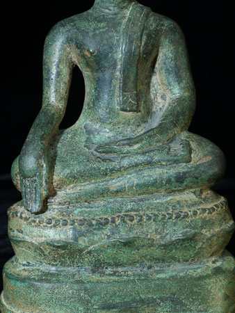 Very beautiful Northern Thai Buddha with a wonderful patina. Excellent condition, with no damage or loss. Expressive face, and great overall feel. Sits 7.5 inches tall.