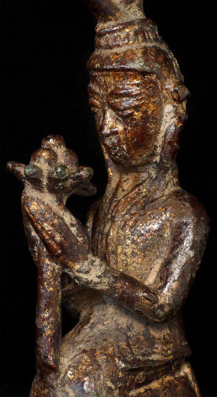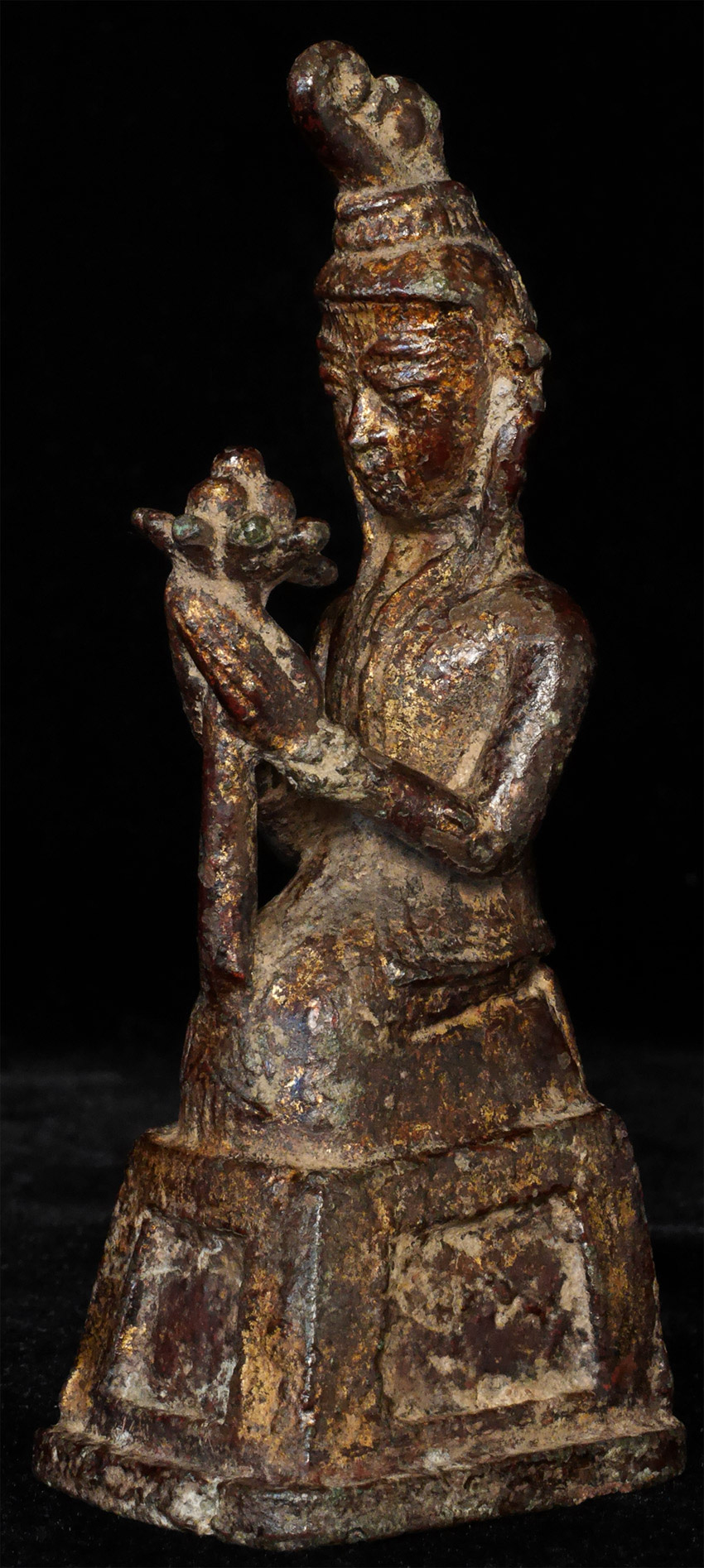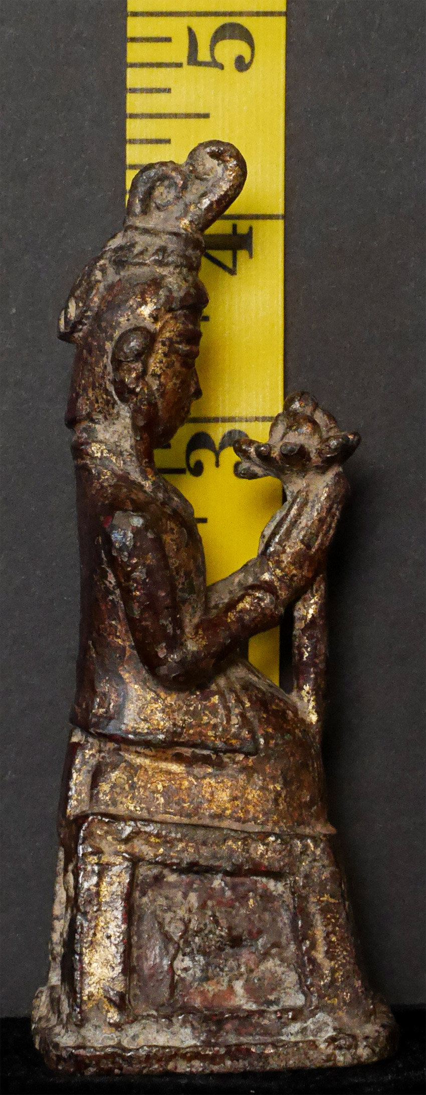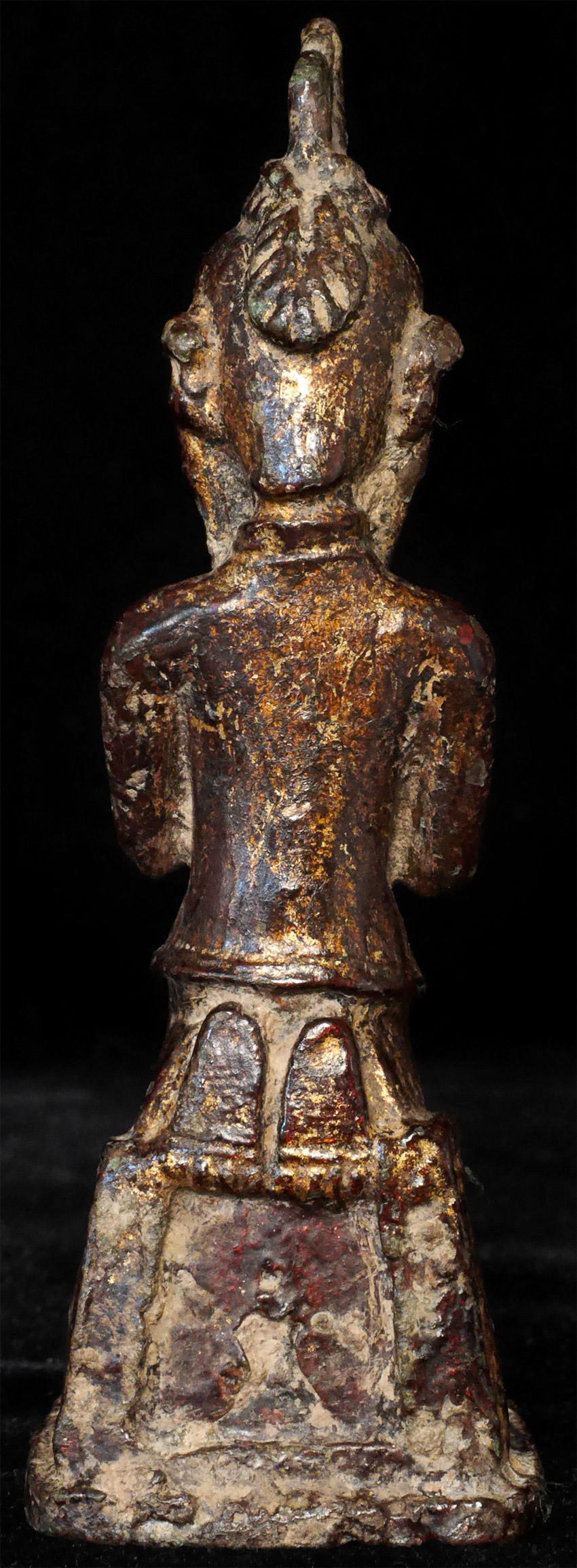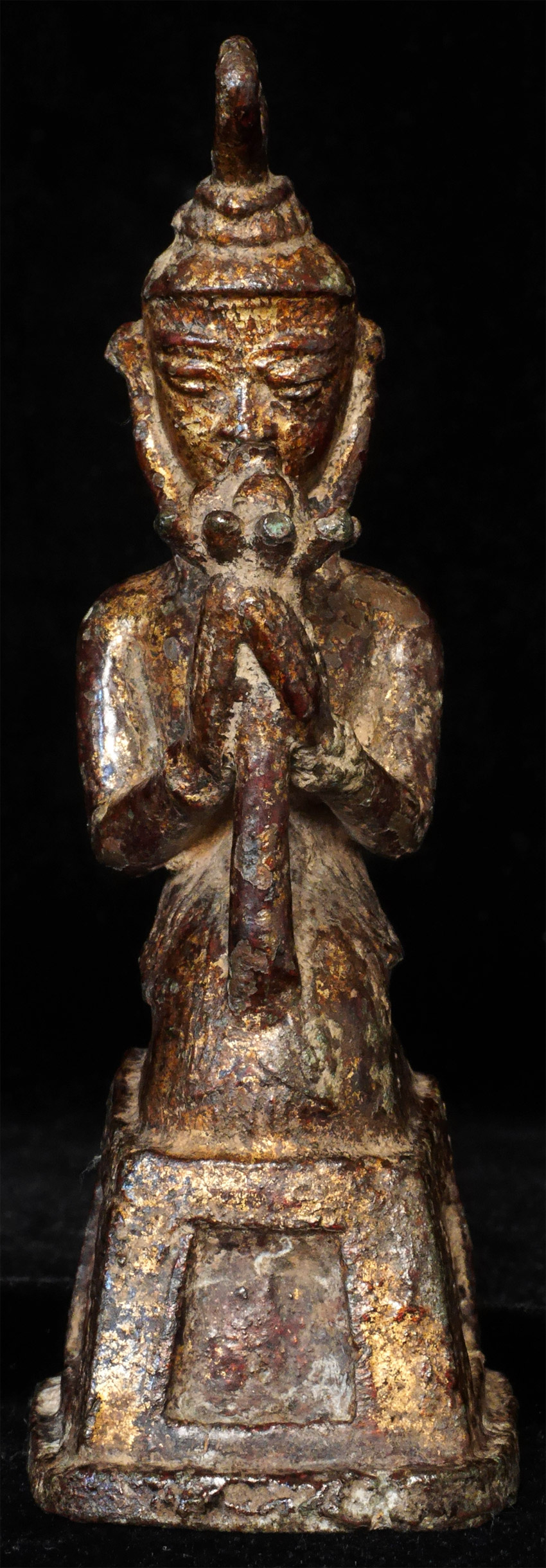 17/18thC or earlier Burmese Buddha devotee under a single Naga and holding a lotus. 4 3/8 inches tall.