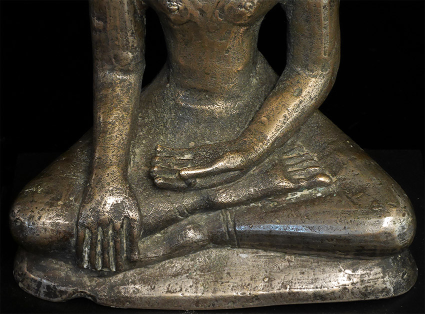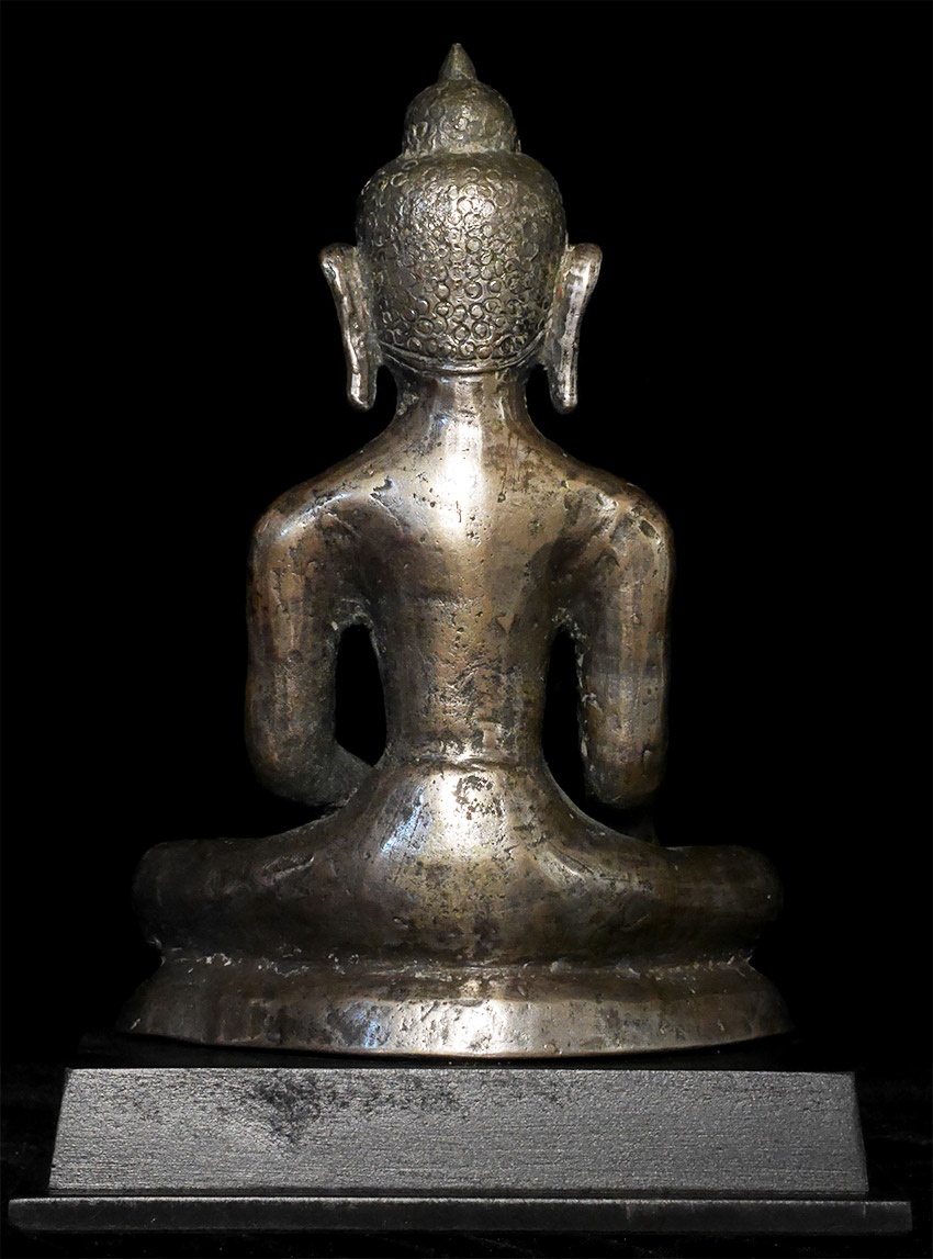 Arakan, high silver content. At least 15thC, possibly earlier. Formerly in the collection ofthe Danish Embassador to Burma. 7 1/8 inches tall, 8 3/8 inches on custom stand.