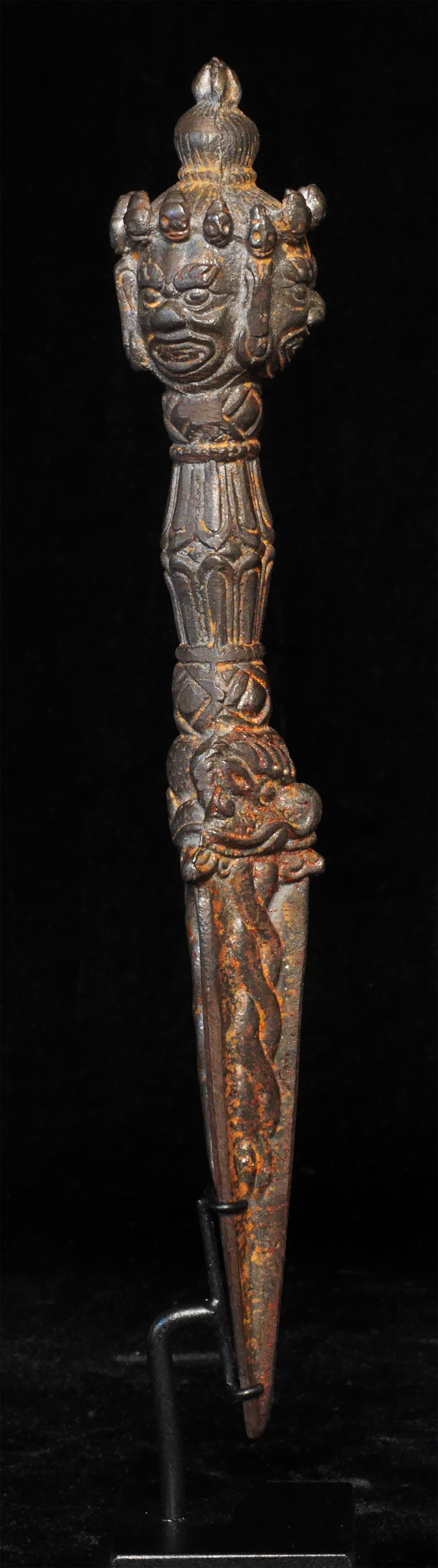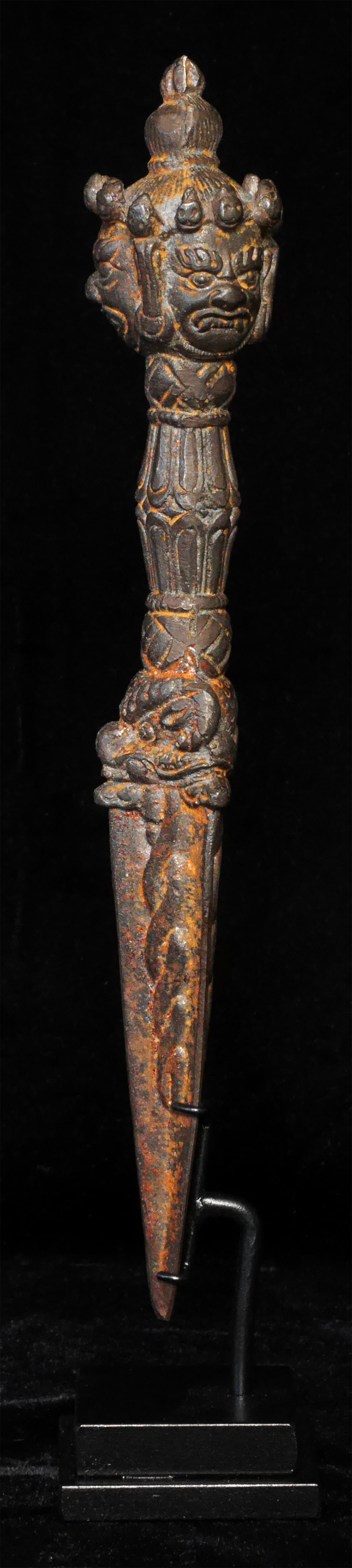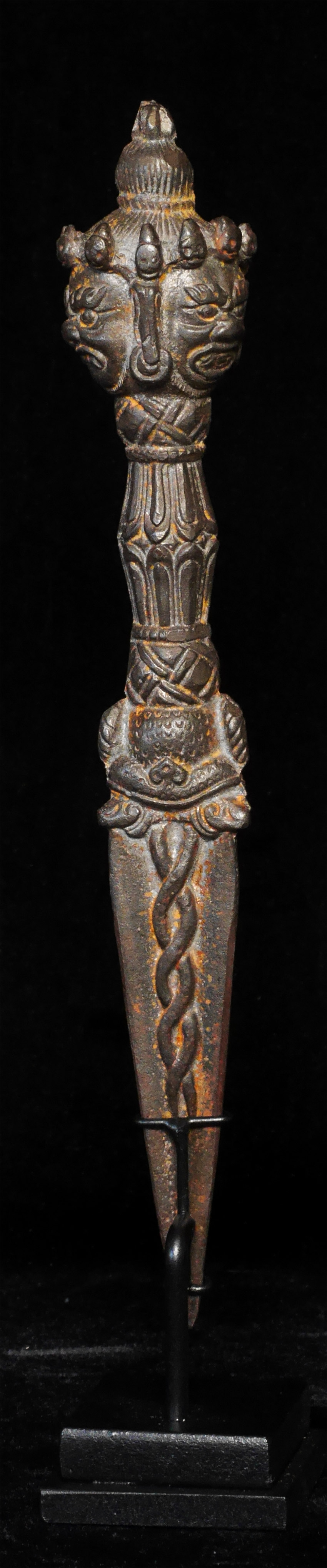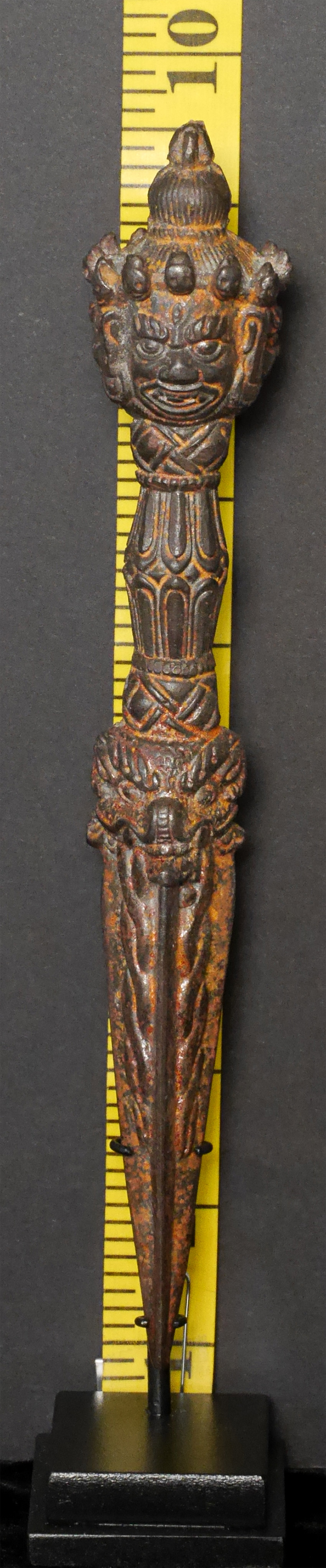Antique Iron Phurba. Very nicely cast. 19/20thC is 8 5/8 inches tall, height on custom stand is 9.5 inches