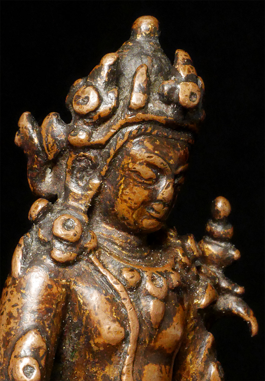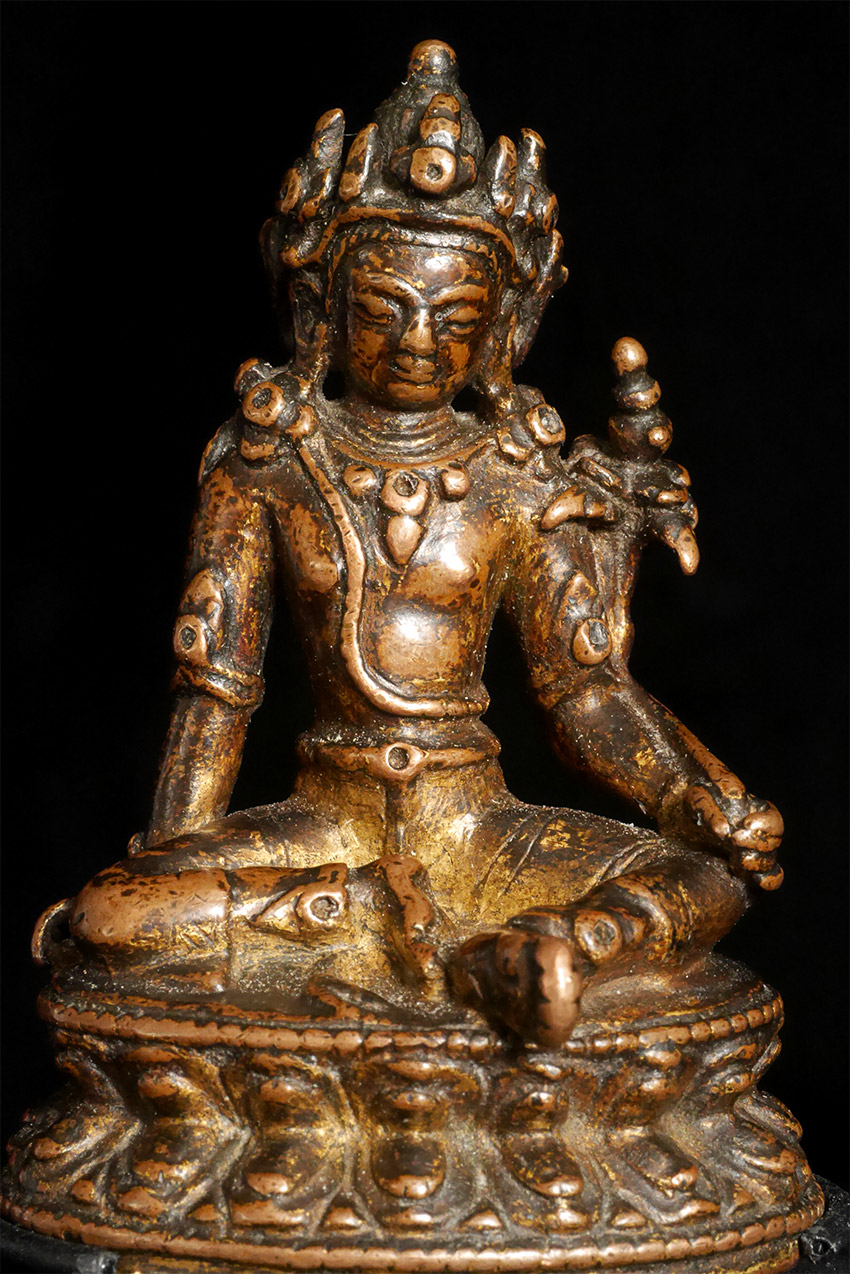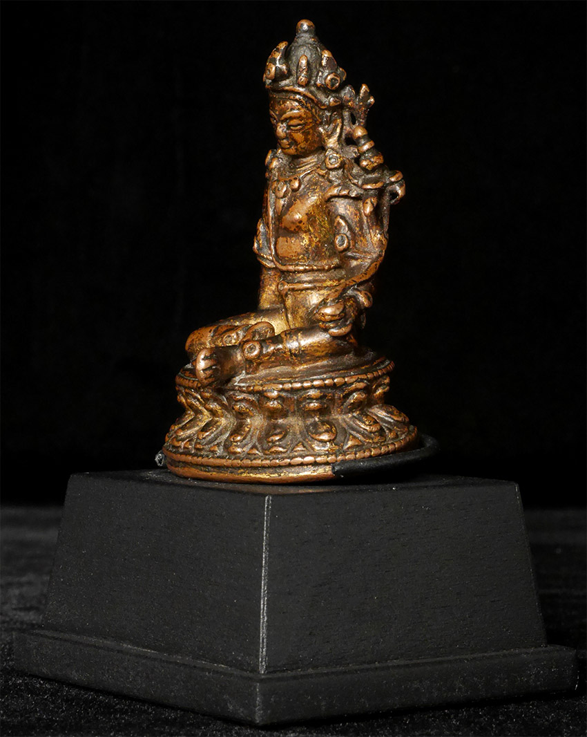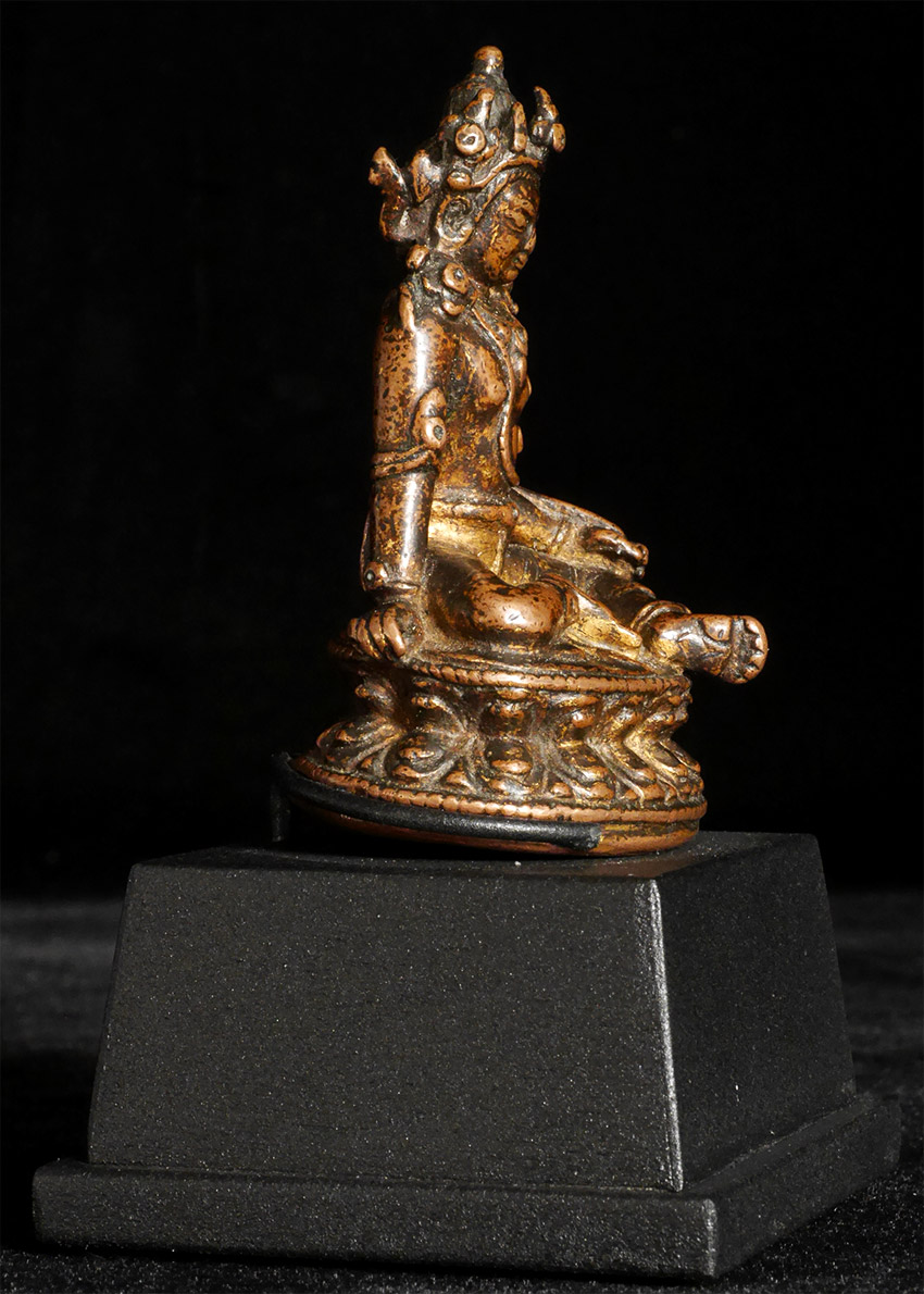 Exceptional early Sino/Tibetan Bodhisattva. Measures 2 3/8 inches tall, 4.25 inches on custom stand.