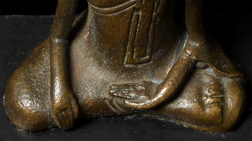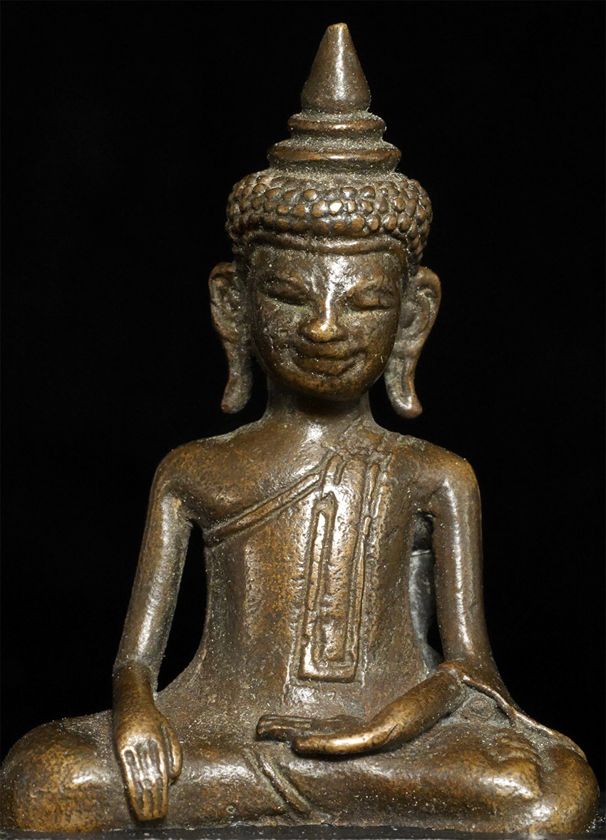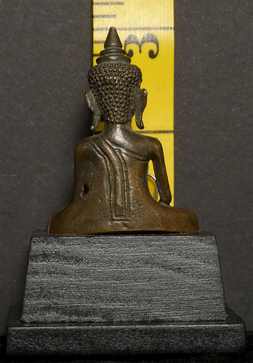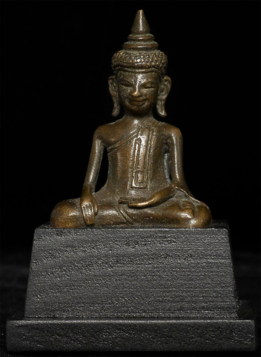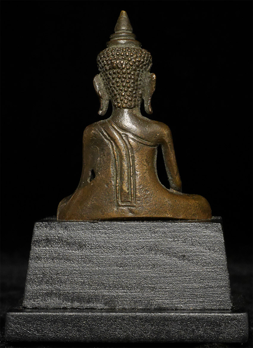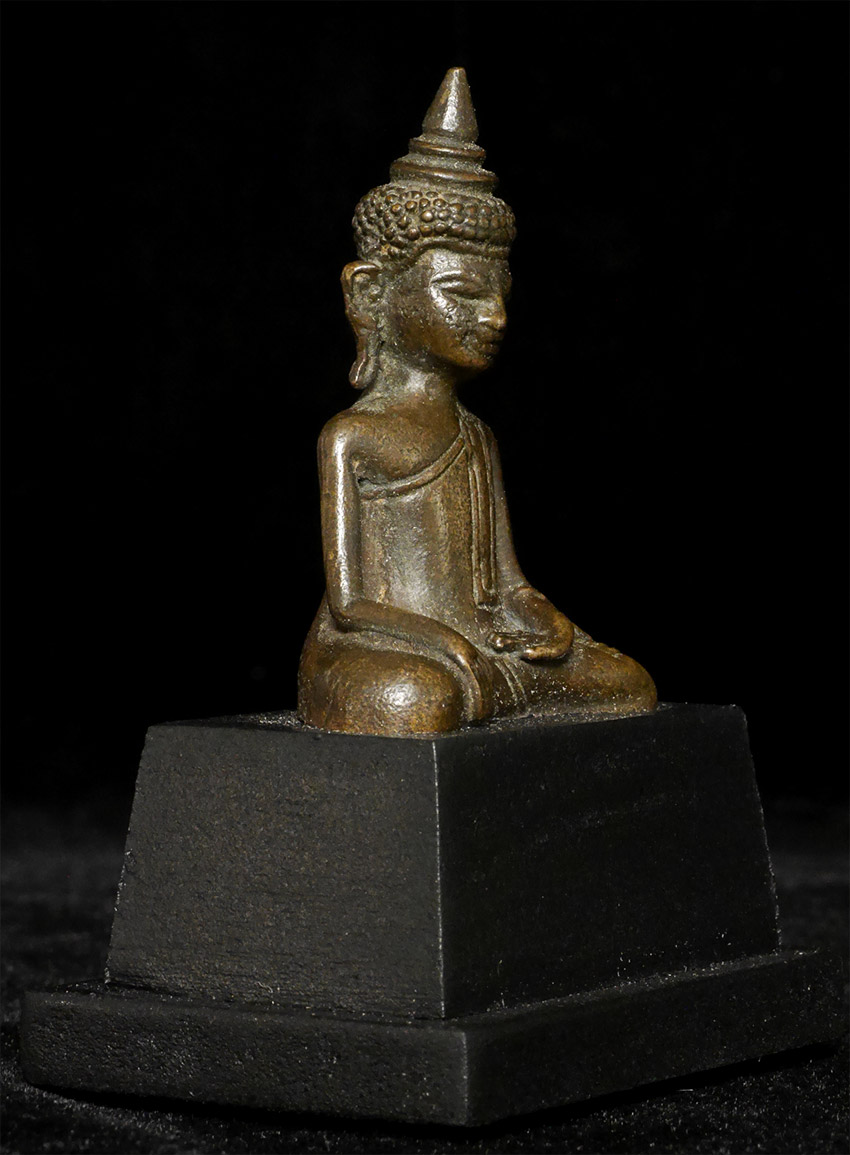 17/18thC solid-cast Cambodian bronze Buddha. Sits 2 " tall and 3" on its custom base.