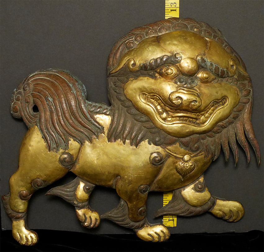 Provenance: came with a Spink Singapore label to one which read: A pair of bronze lion plaques 18th century S$ 4, 500. We somehow mis-placed it during photographing. I am not convinced, based on the lack of wear or any damage or loss that they are 18thc, though the very thick casting, high quality workmanship and beginings of verdigris do suggest they have some age.
