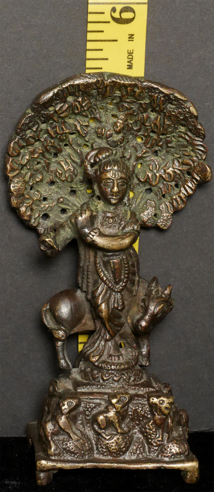 Indian Krishna bronze circa 1900. Measures 5 1/8 inches tall.