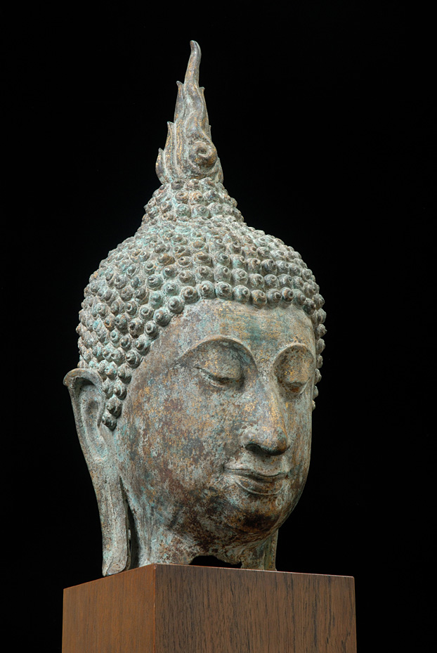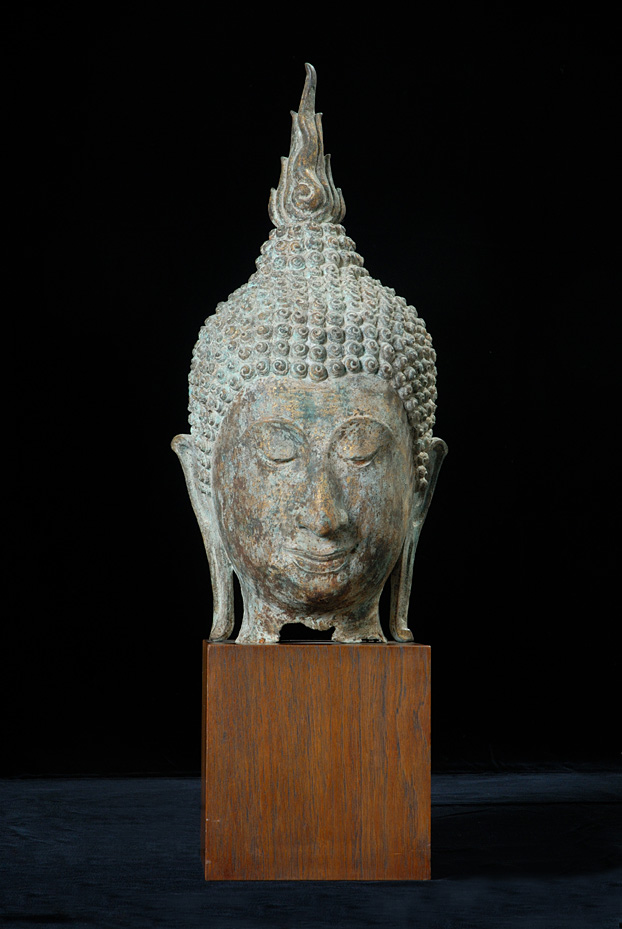Re-listed with new professional photos, and now moved from the “personal collection” section to be offered for sale- the best of my collection-larger than life size finely cast Sukothai Bronze Buddha Head of the best quality. From the collection of a wealthy San Francisco Socialite. Purchased in Burma in the 1960's or early 70's. Stands 18 inches tall not including the base. This piece will be in the logo of my new website.