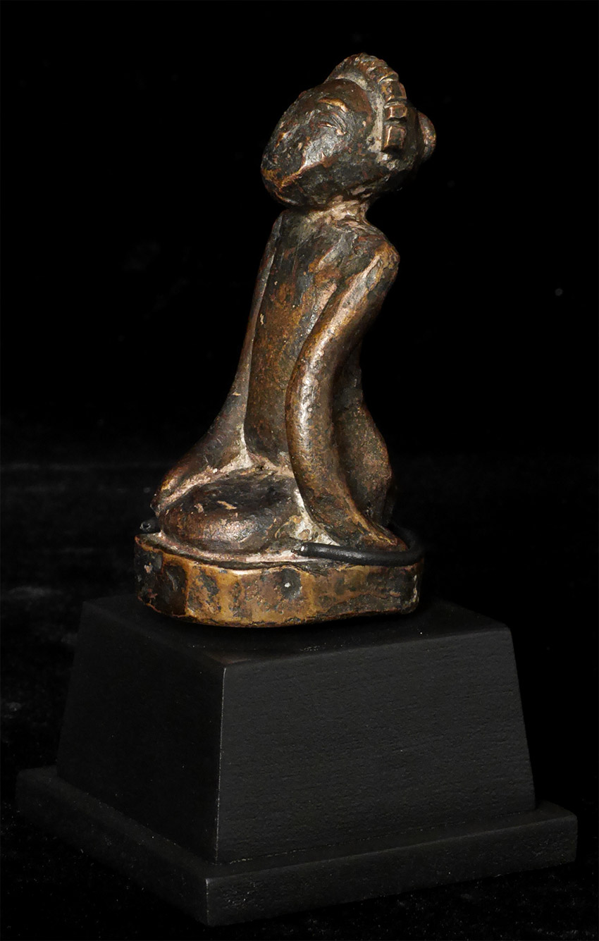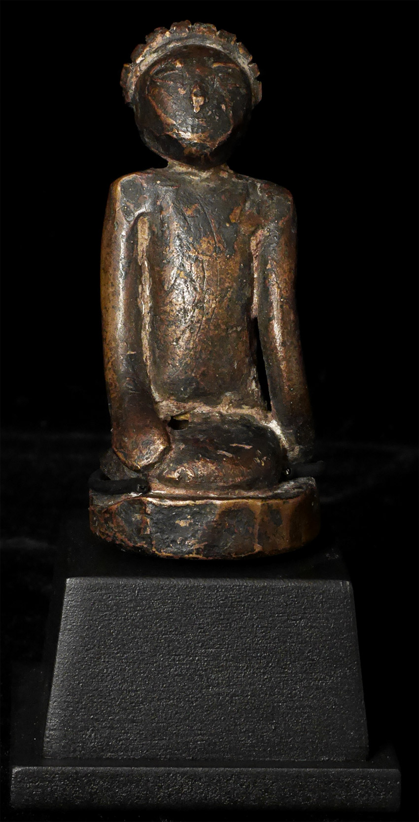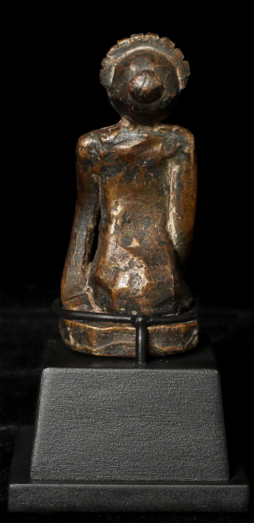 Very unusual Antique Thai Bronze Devotional Figure. Great lines. 3 inches tall, 4 3/8 inches on a custom stand. Looks to have good age, Possibly extremely old
