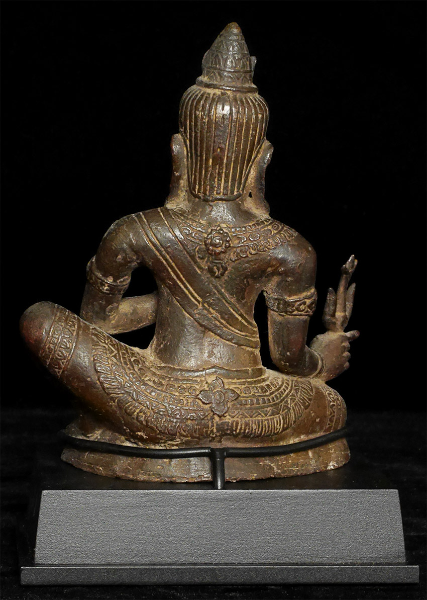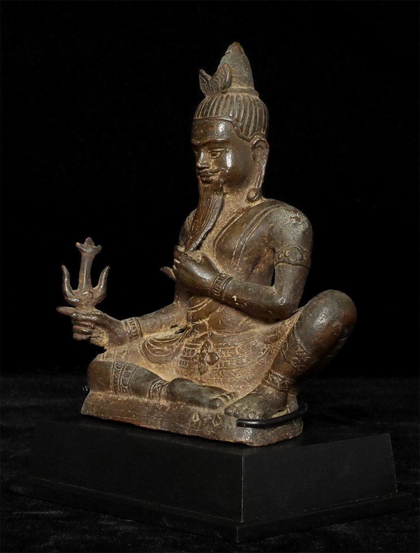 Remarkable antique Vietnamese bronze Shiva. 6 inches tall, 7.25 inches on a custom stand. Has many features from the Cham period of Vietnamese sculpture, though more likely it is 500 years old or less Purchased many years ago from a westerner who lived in Vietnam in the 1990's and had acquired a wonderful group of uncommon Cambodian bronzes.
