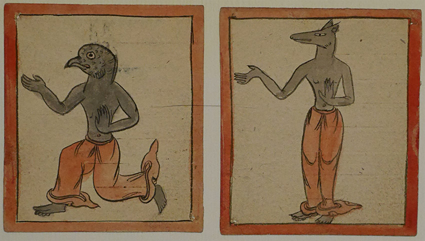 Set of 9 Mongolian Tantric figures on paper, each approximately 2.75 x 3.1/8 inches. Very hard to find a set like this in good condition- purchased 25 years ago when Mongolia was first opening to the west. Would look great framed. Only 2 of the backs shown, but all have writing.