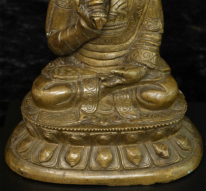 Antique sculpture of Revered Mongolian Teacher cast in bronze . I have seen this figure several times over the years though I do not know his name. Wonderful face with owl-like eyes. Sits 6 inches tall, 7.25 inches on custom stand.