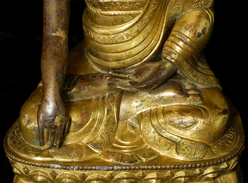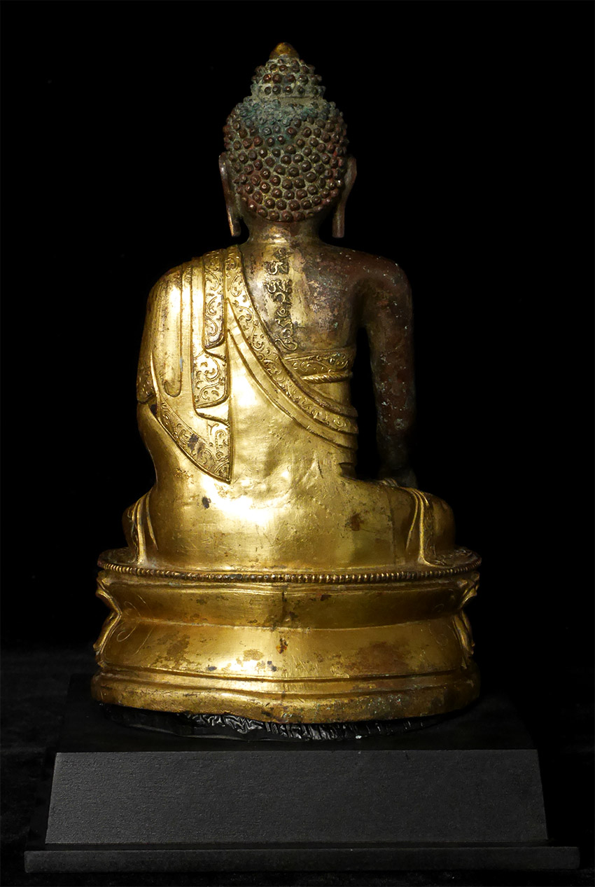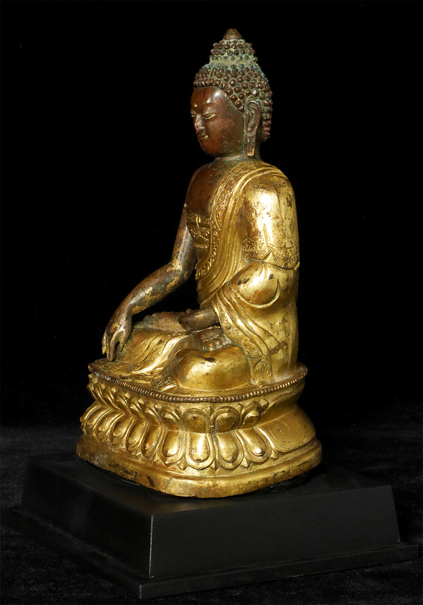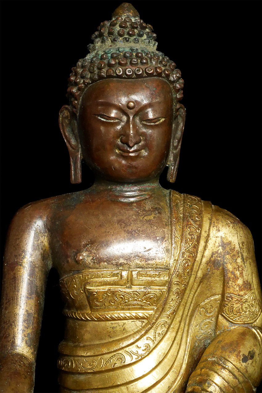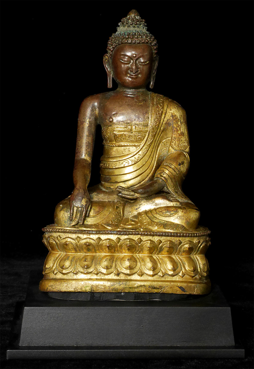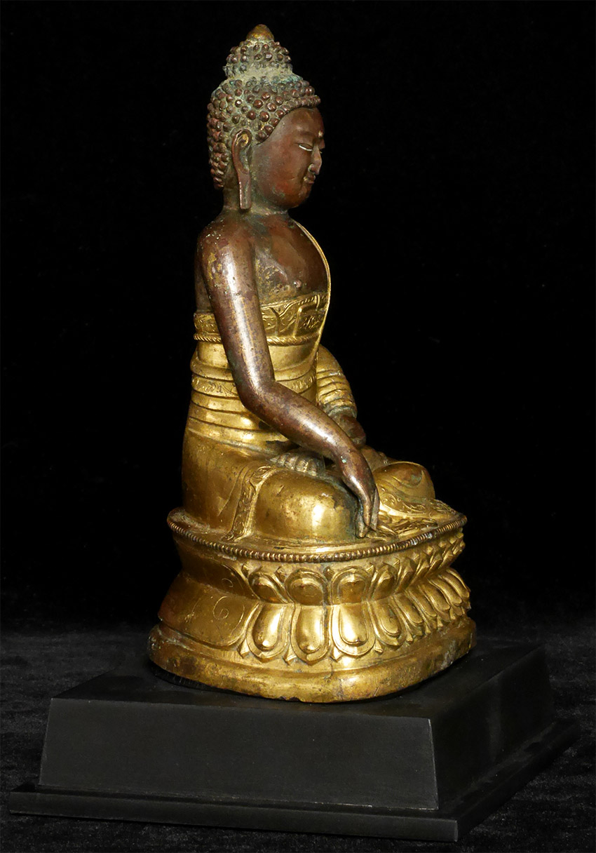 Fine Antique Copper Repousse Mongolian Buddha. Sits 7 3/8 inches tall, 8 3/8 inches on custom stand