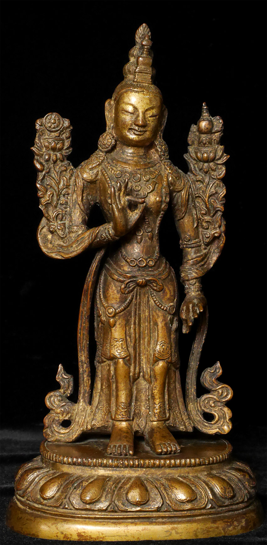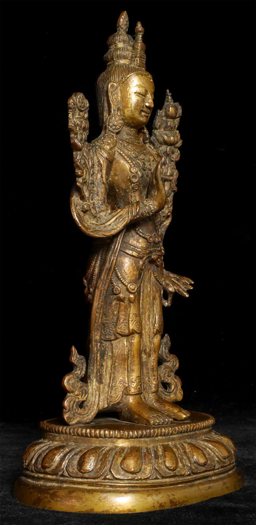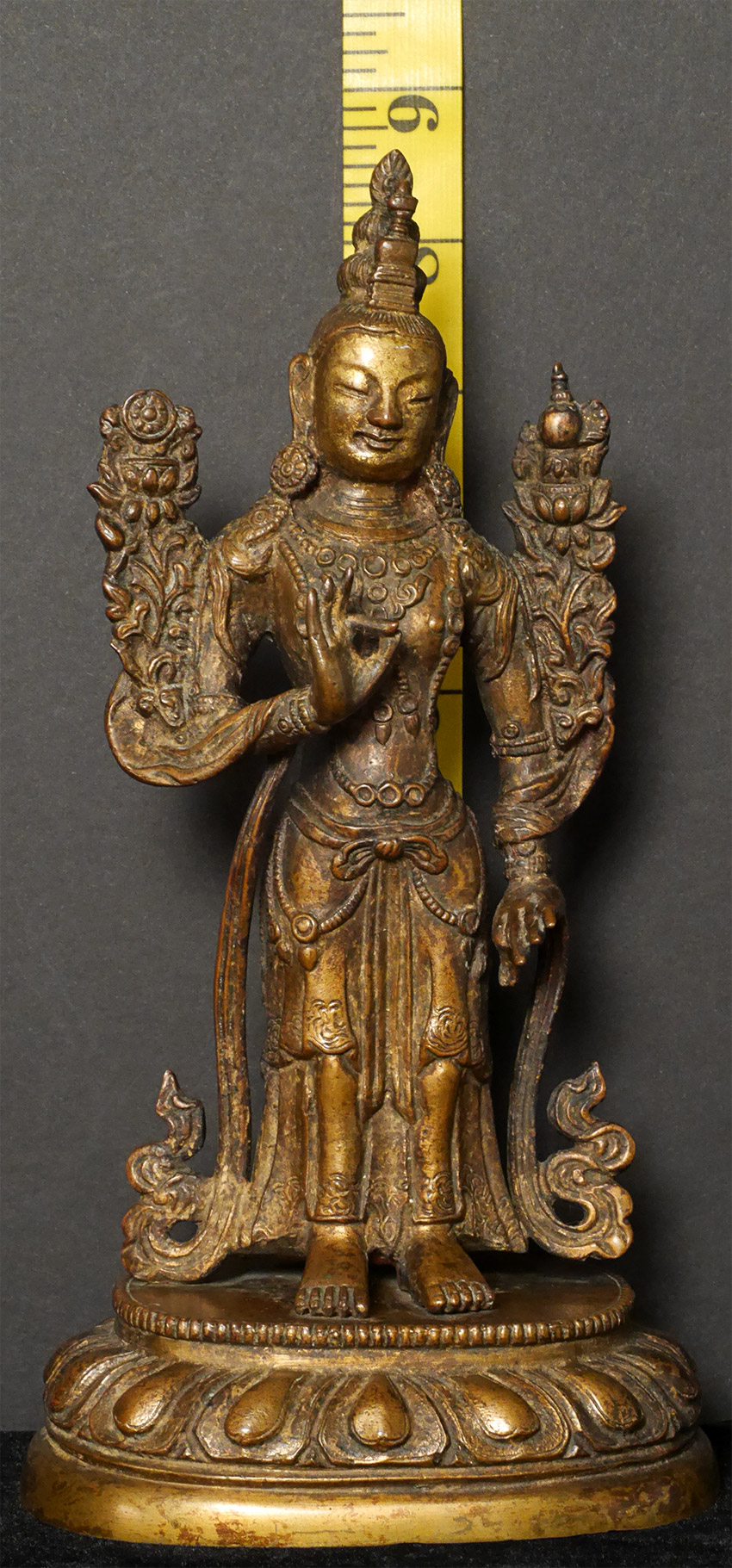 Fine Antique Mongolian or Tibetan Bronze Bodhisattva. Purhased through respected Italian Auction House. 8 5/8 inches tall