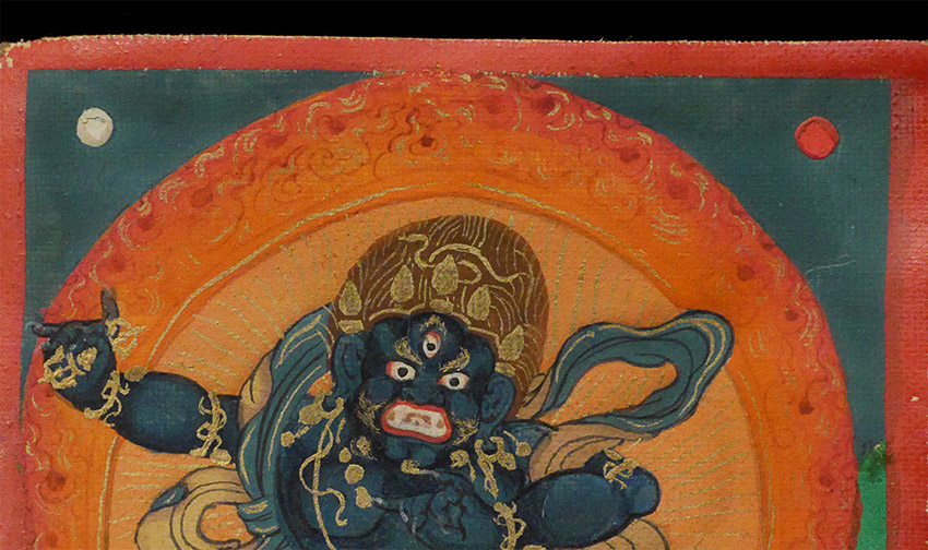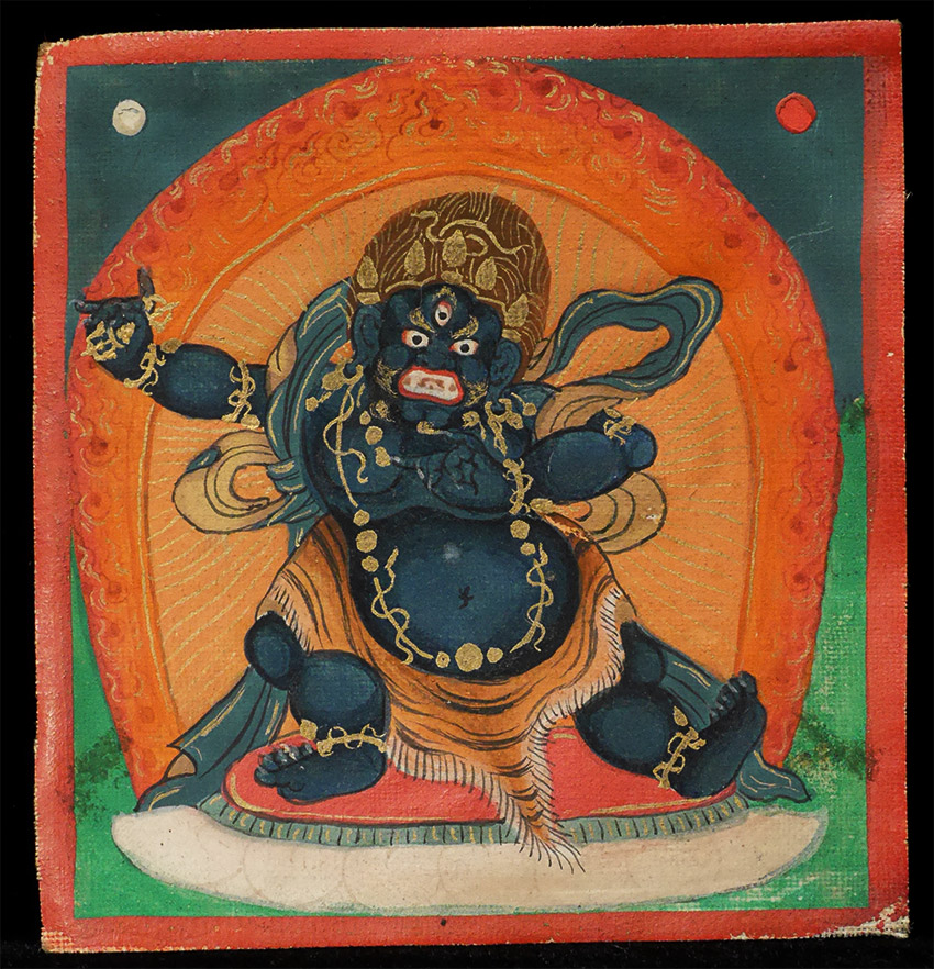 Antique Mongolian Miniature thangka measures 2 3/8 x 2.5 inches. Very fine and clean