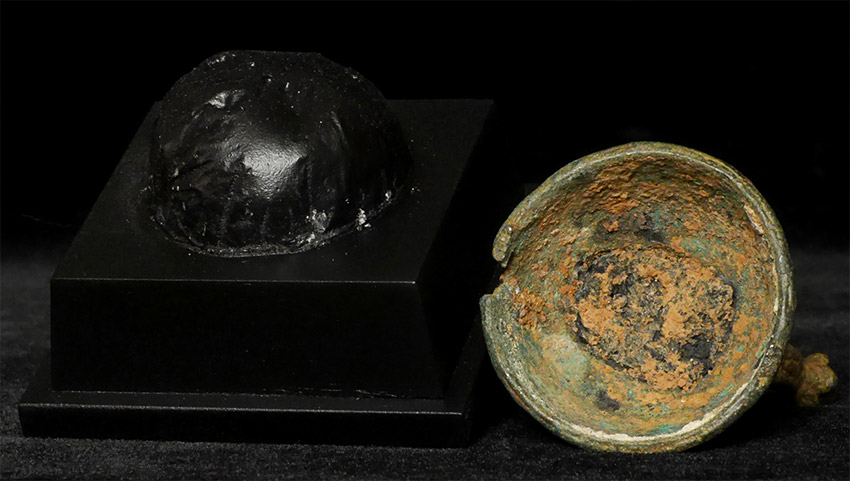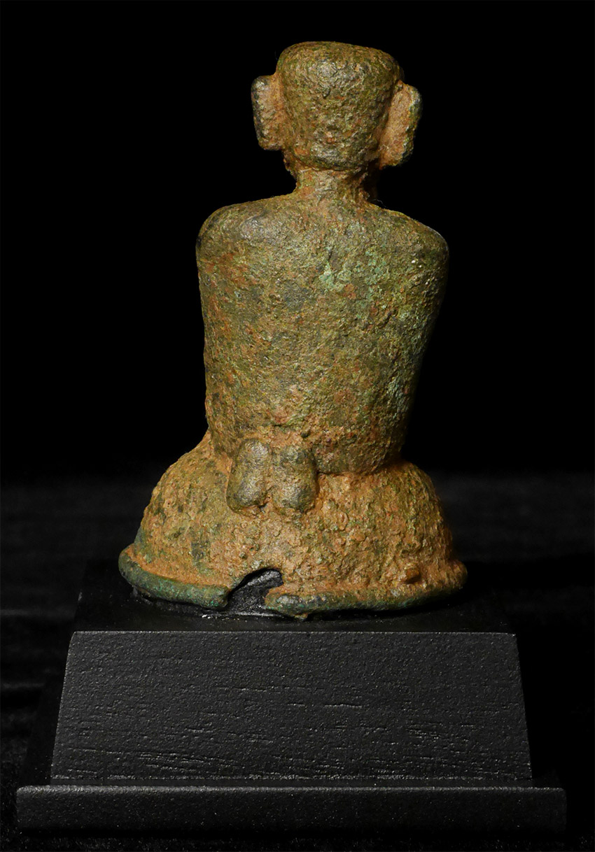 Early Burmese Monk- rare type- Deeply devotional piece. The "bubble" eyes, full round base, and short ears suggest a very early dating (and being early "Mon" style)- probably at least 800-900 years old and possibly well over 1000 years old. Sits 2 and 7/8 inches tall, 3.75 inches.