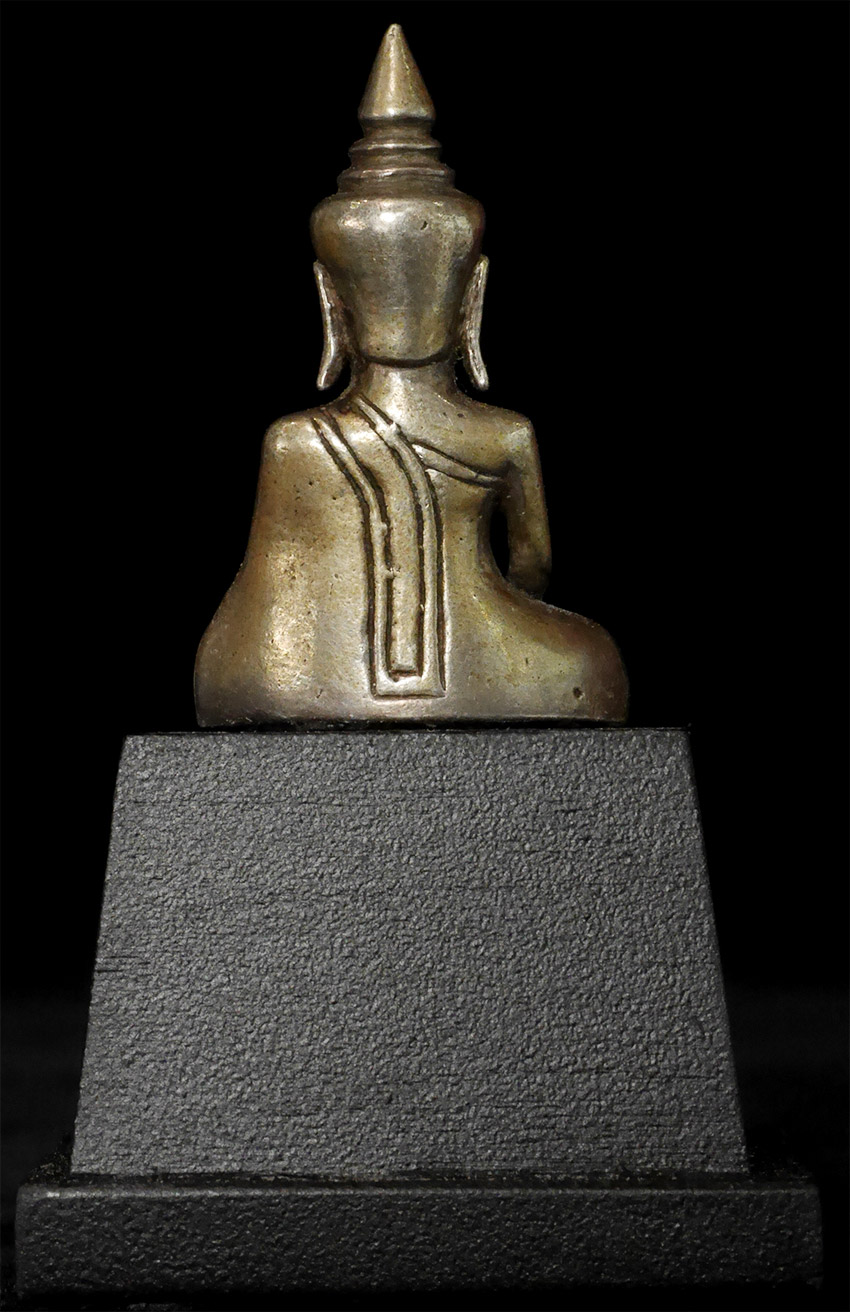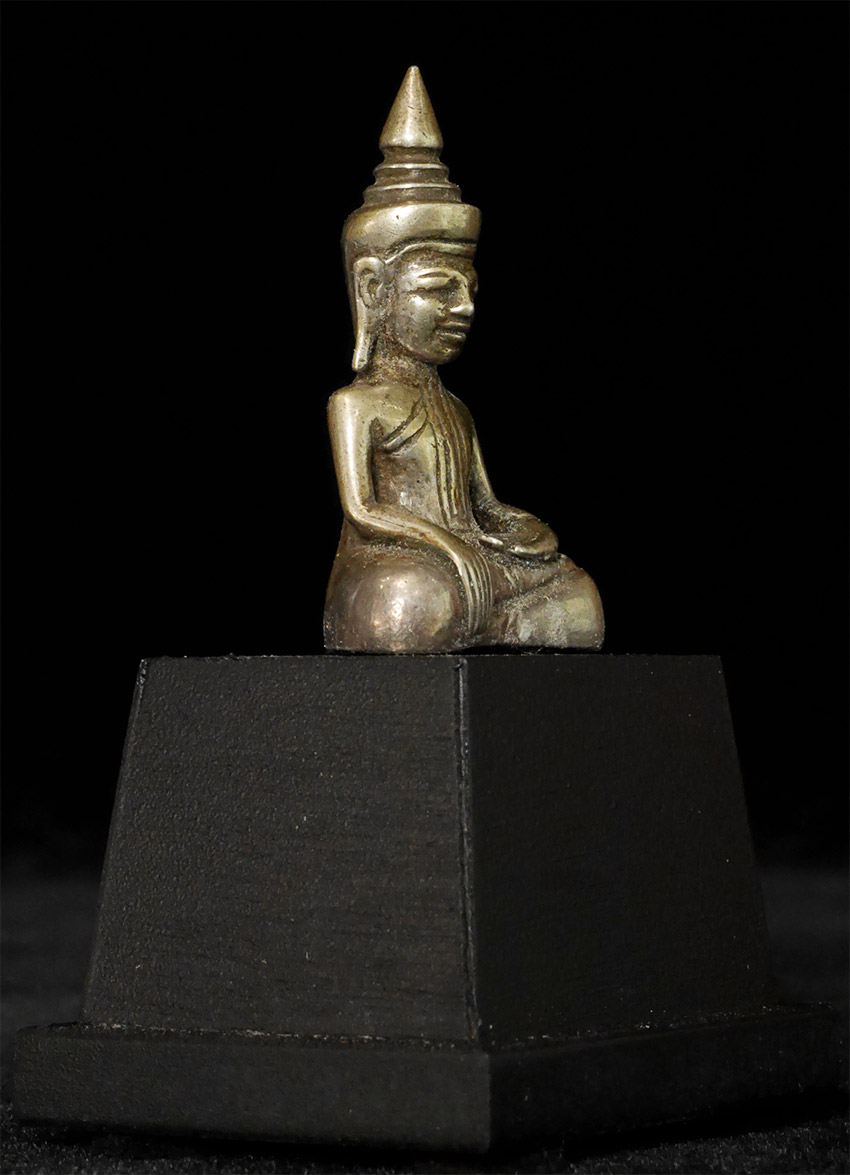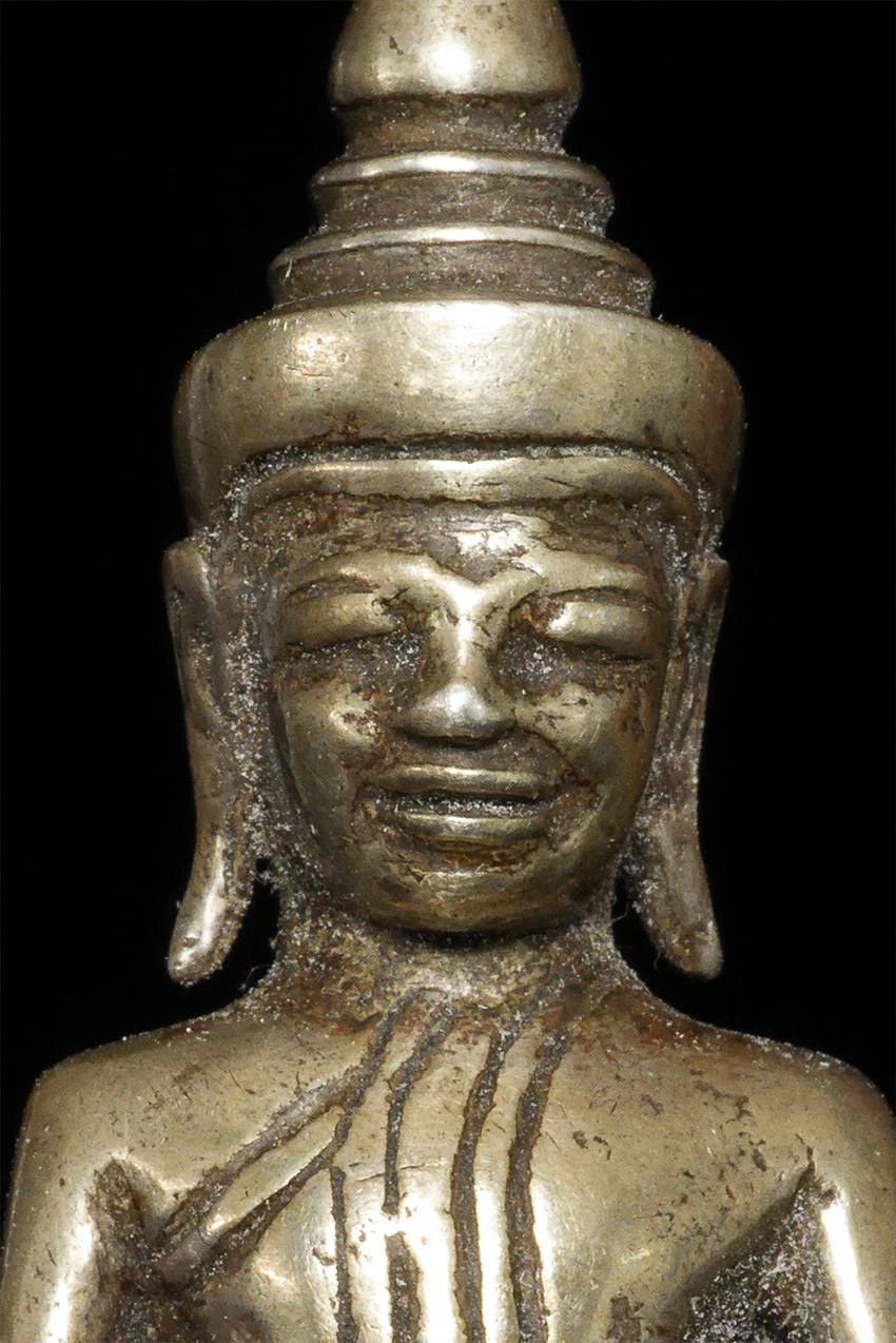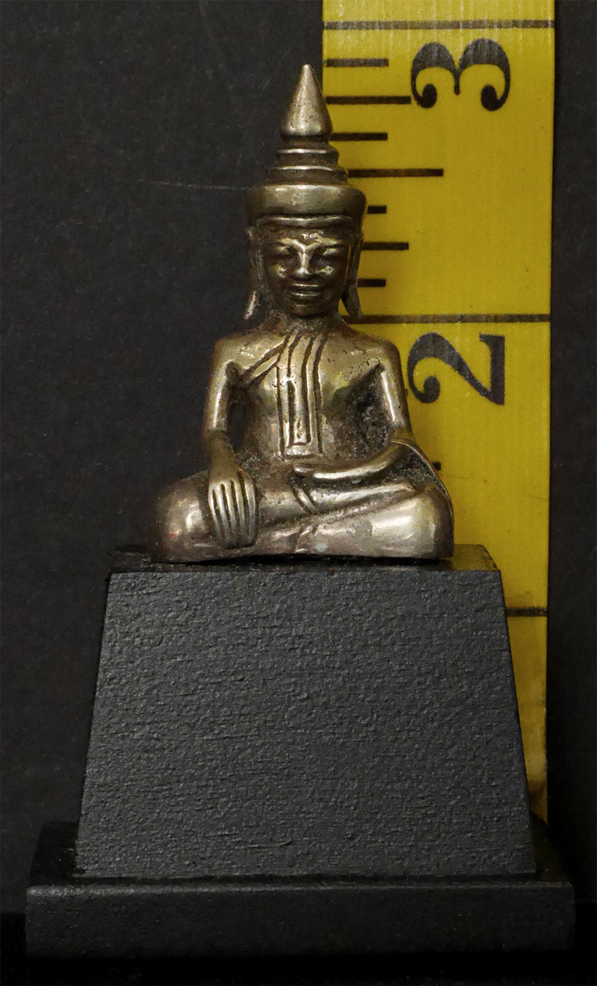 Wonderful 17/18thC Silver Cambodian Buddha. A personal favorite. 1 5/8 inches tall, 2 7/8 inches on custom stand.