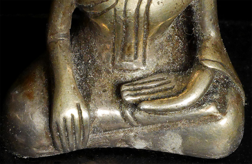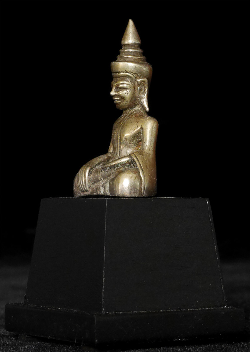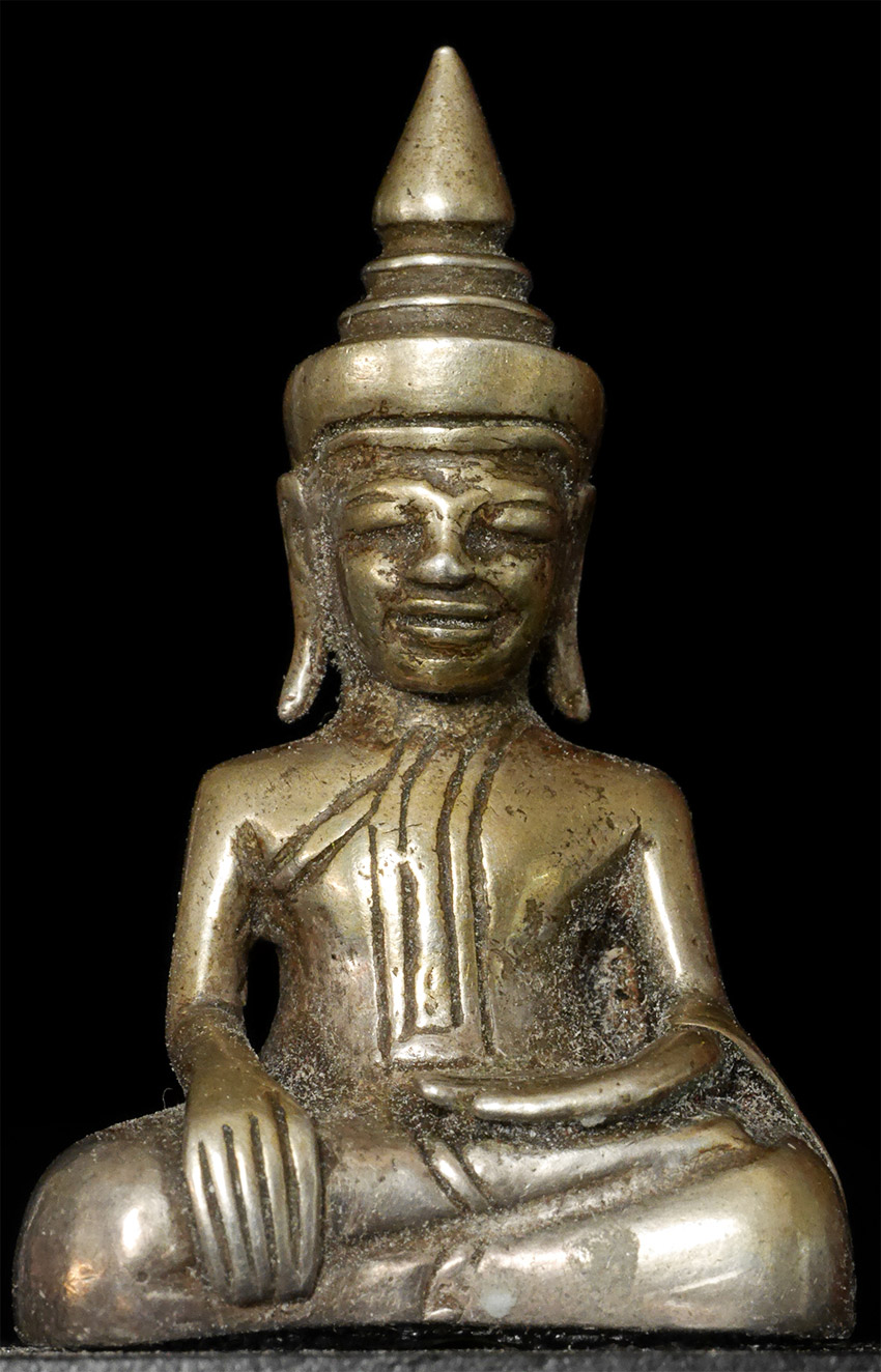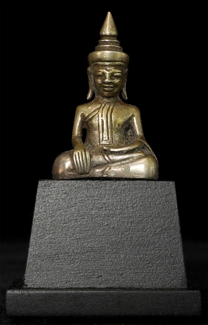 Wonderful 17/18thC Silver Cambodian Buddha. A personal favorite. 1 5/8 inches tall, 2 7/8 inches on custom stand.