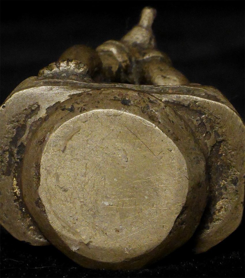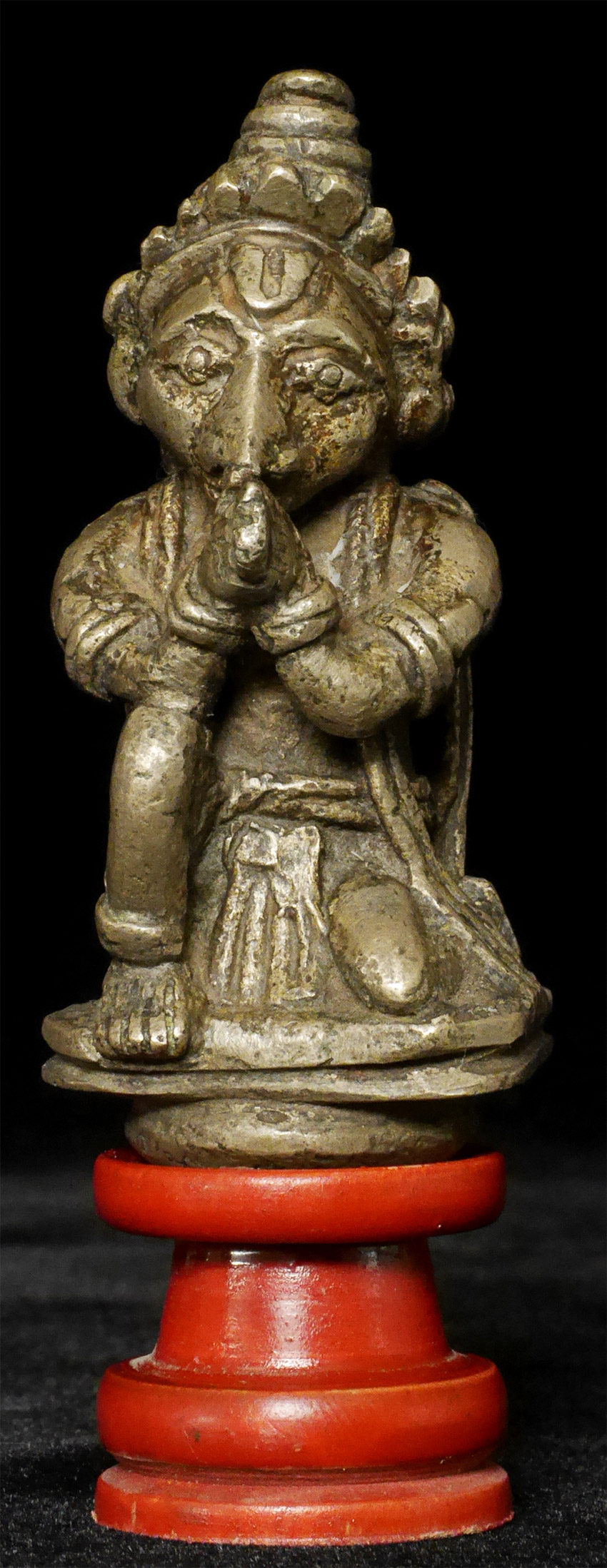 Unique early solid-cast Garuda, probably from India, is 3 inches tall, 3.75 inches on optional stand