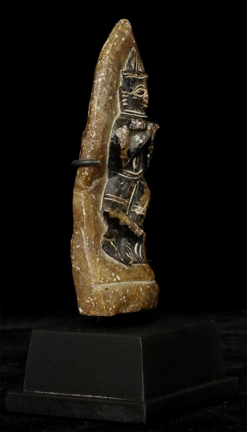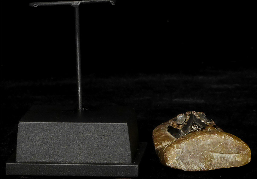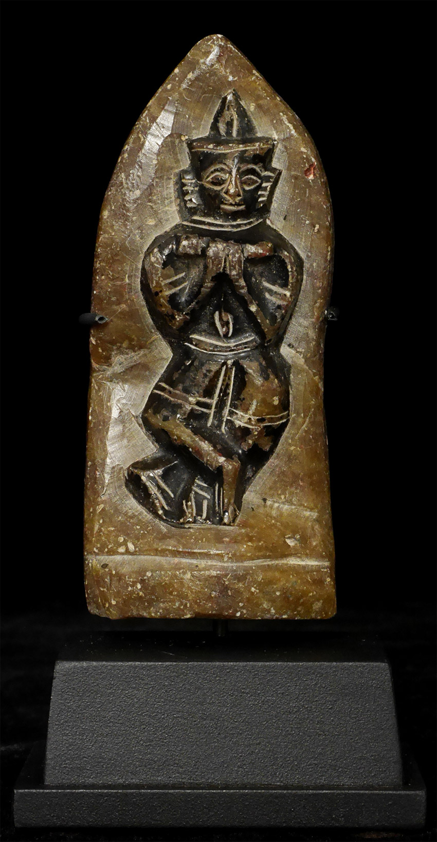 15/16thC Cambodian carved stone Buddha with black lacquer. I've owned this piece for 25 years and in all that time I've not seen another anything like it. Very uncommon. Sits 3.75 inches tall, 4 7/8 inches on custom stand