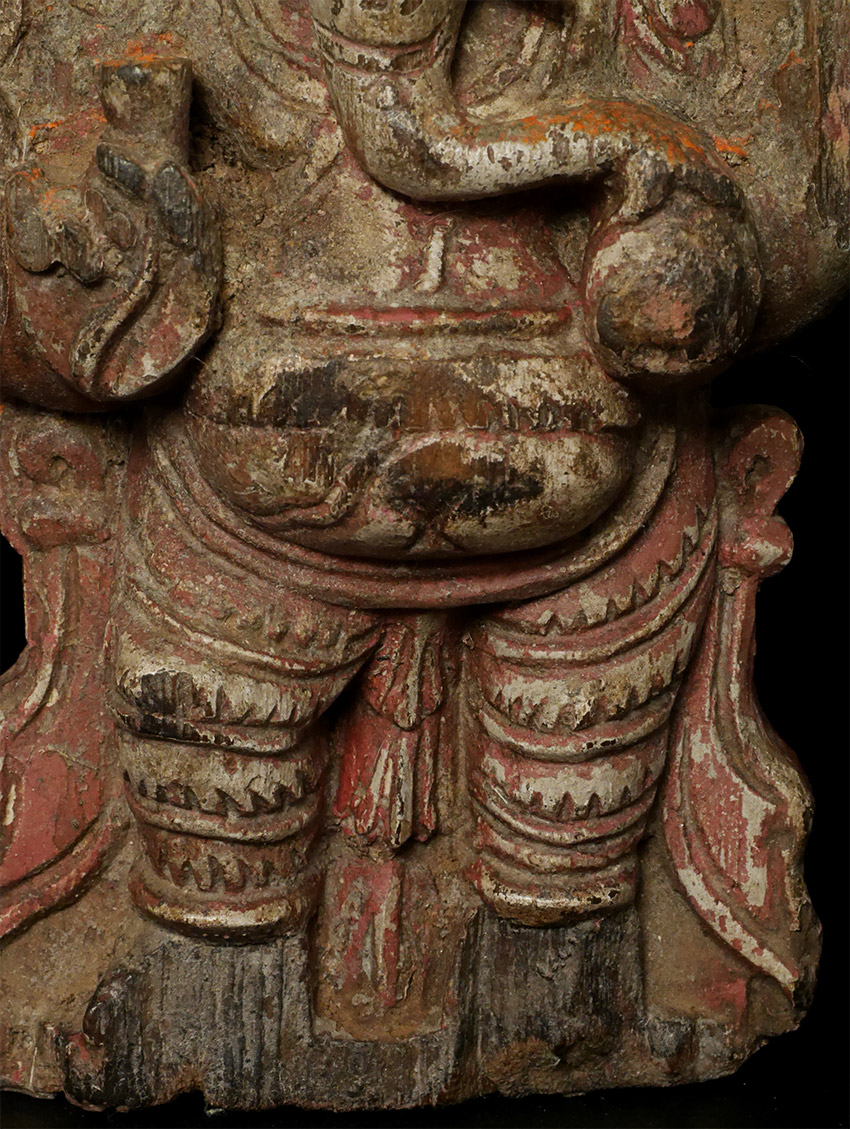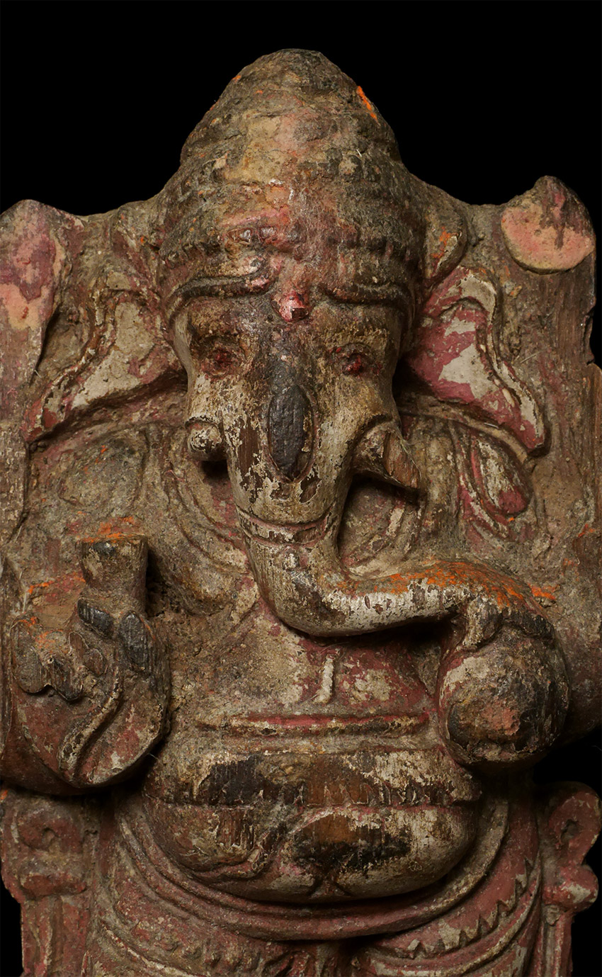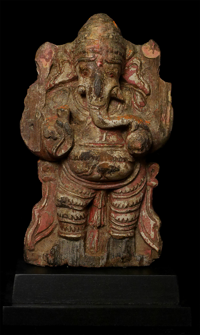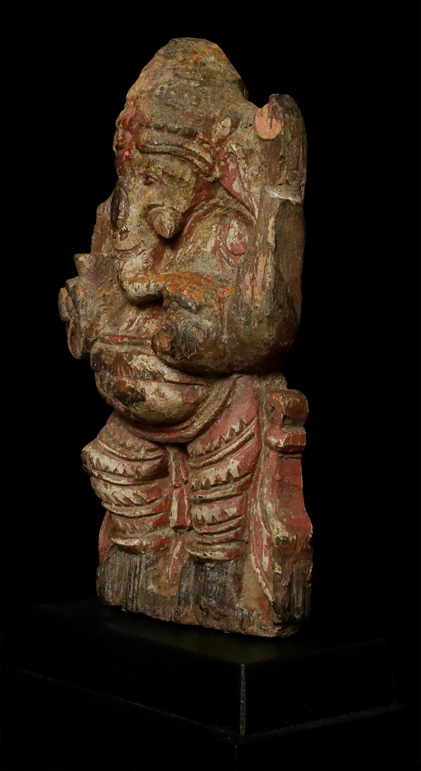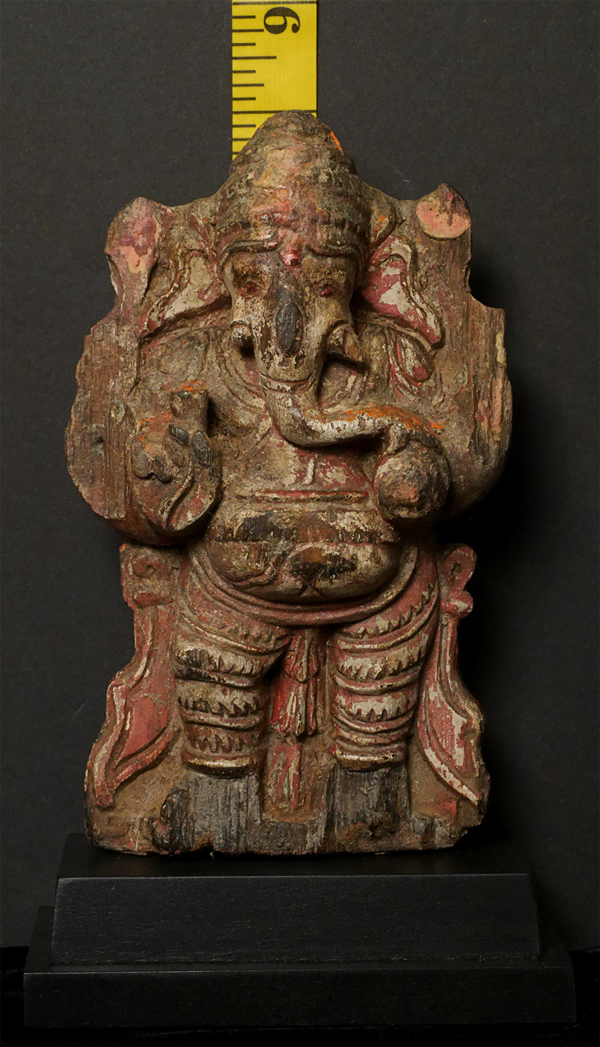 Antique Wooden Ganesh. Stands proudly at 6.5 inches tall, 8 inches on custom stand.