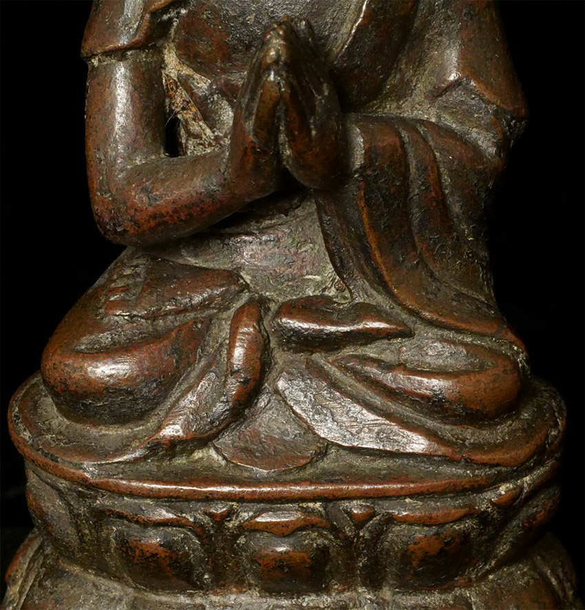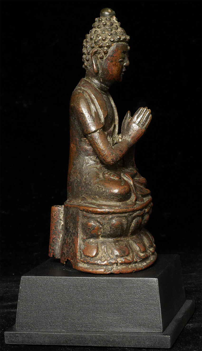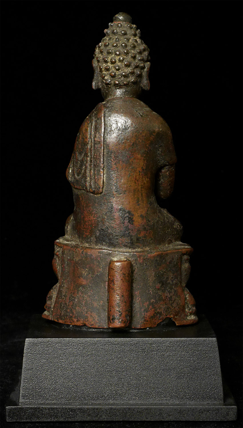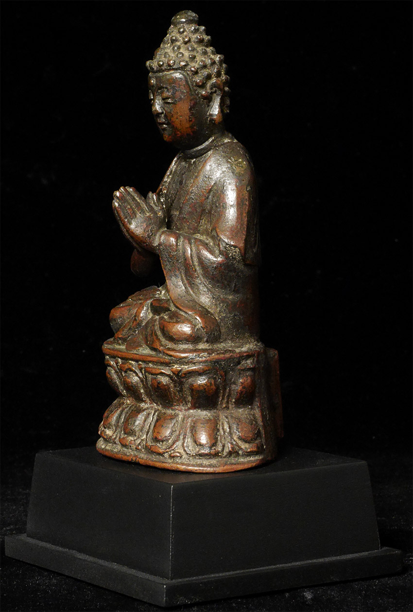Exceptional Ming Buddha While not as large as some, (5 inches tall, 6.5 inches on custom stand), the quality his high and his presence is large. Loop on the back is an uncommon feature.