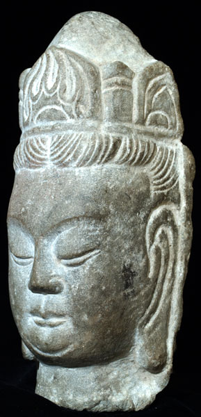 Nice Chinese stone Quanyin head. Came out of an estate of nice old items, and looks to have authentic age, but I’ve become so suspicious of all Chinese stone heads without a clear provenance or expert appraisal that I will not give any kind of age to it. Beautifully carved, and a very nice size at 7.5 inches tall. Stands firmly on it's own.