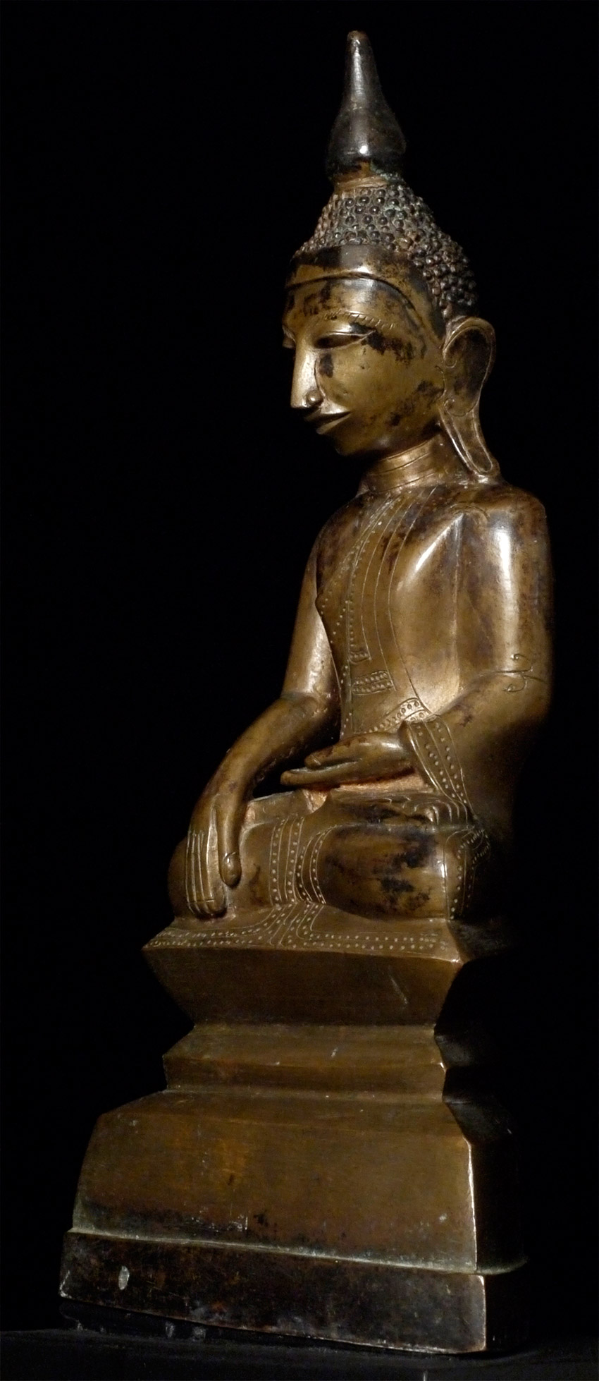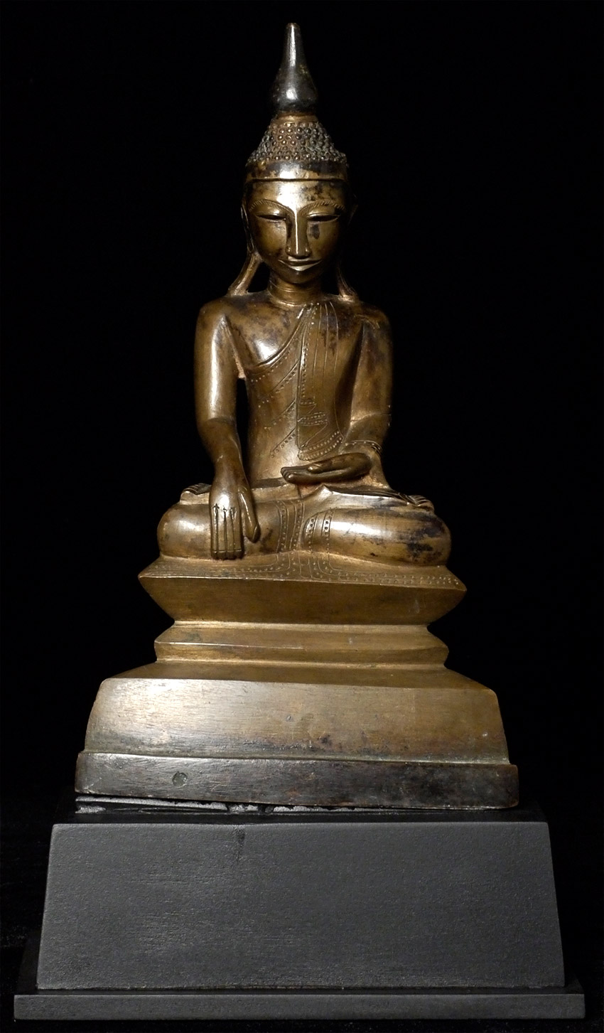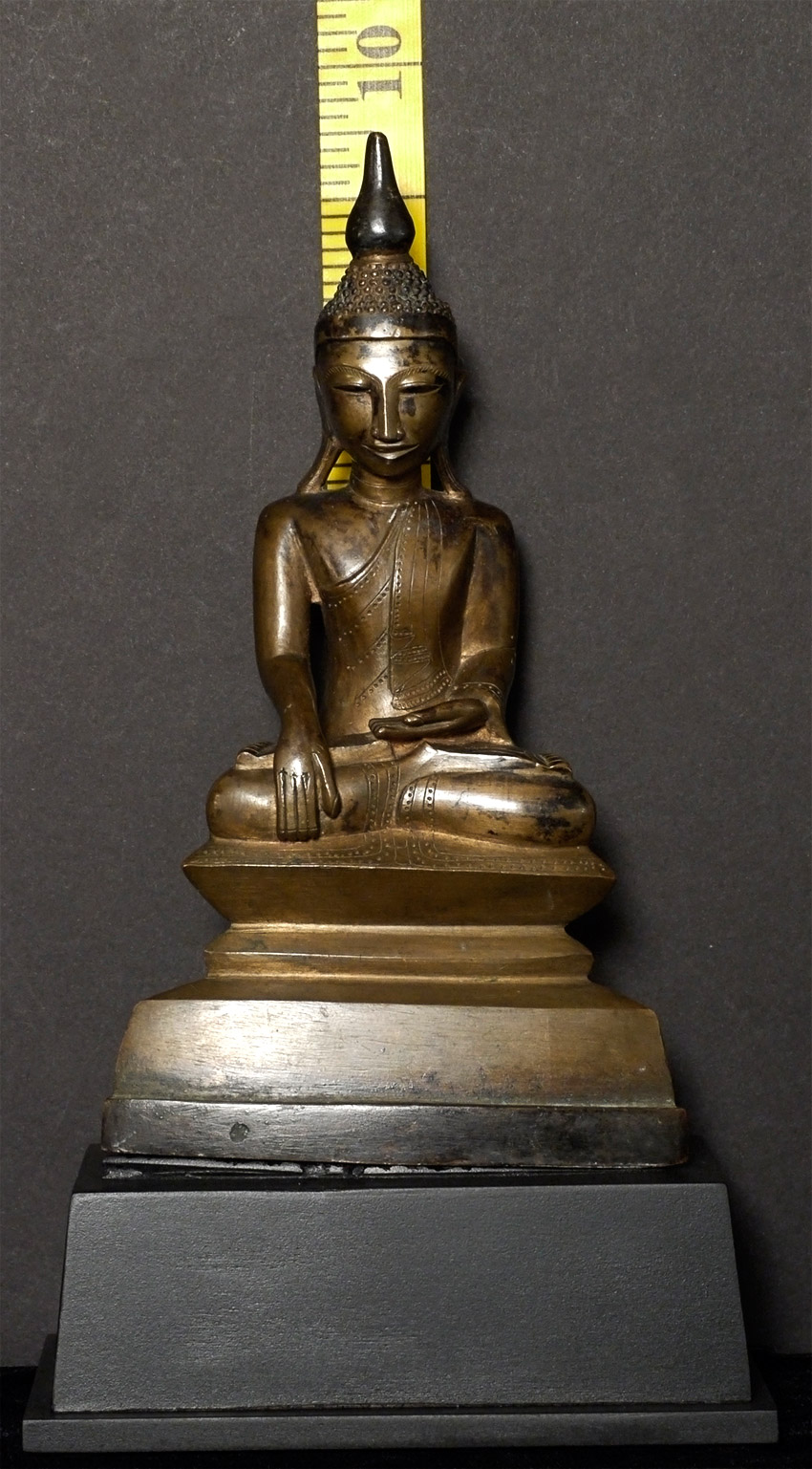 Good Burmese Shan Buddha. 7 5/8 inches tall, 9.5 inches on custom stand.