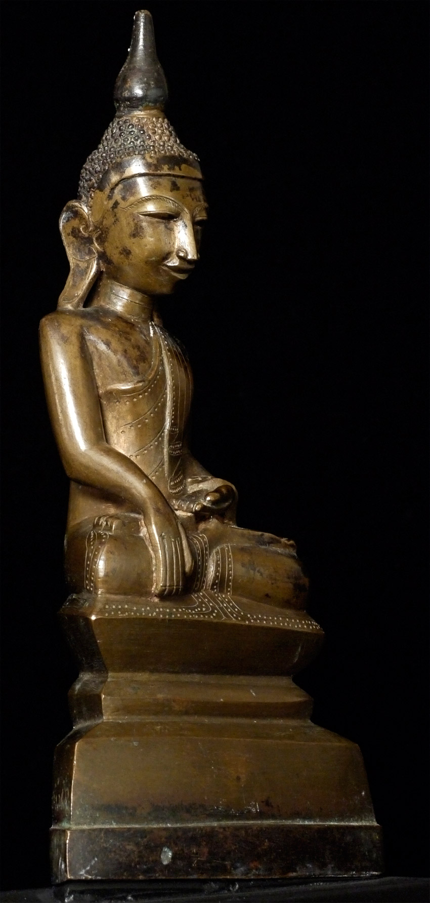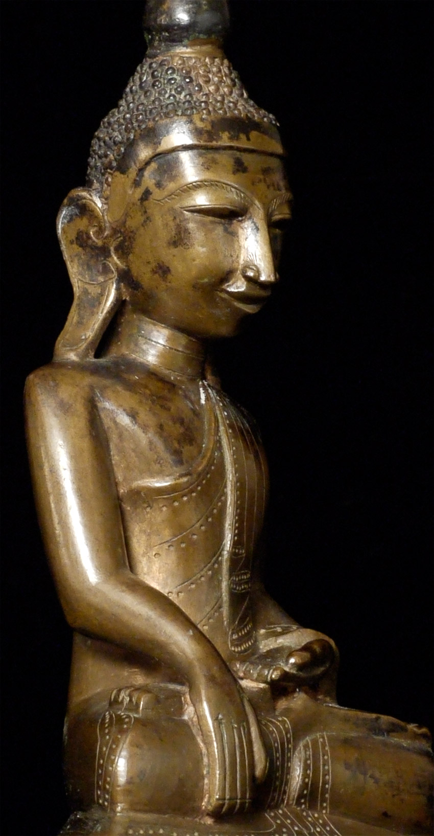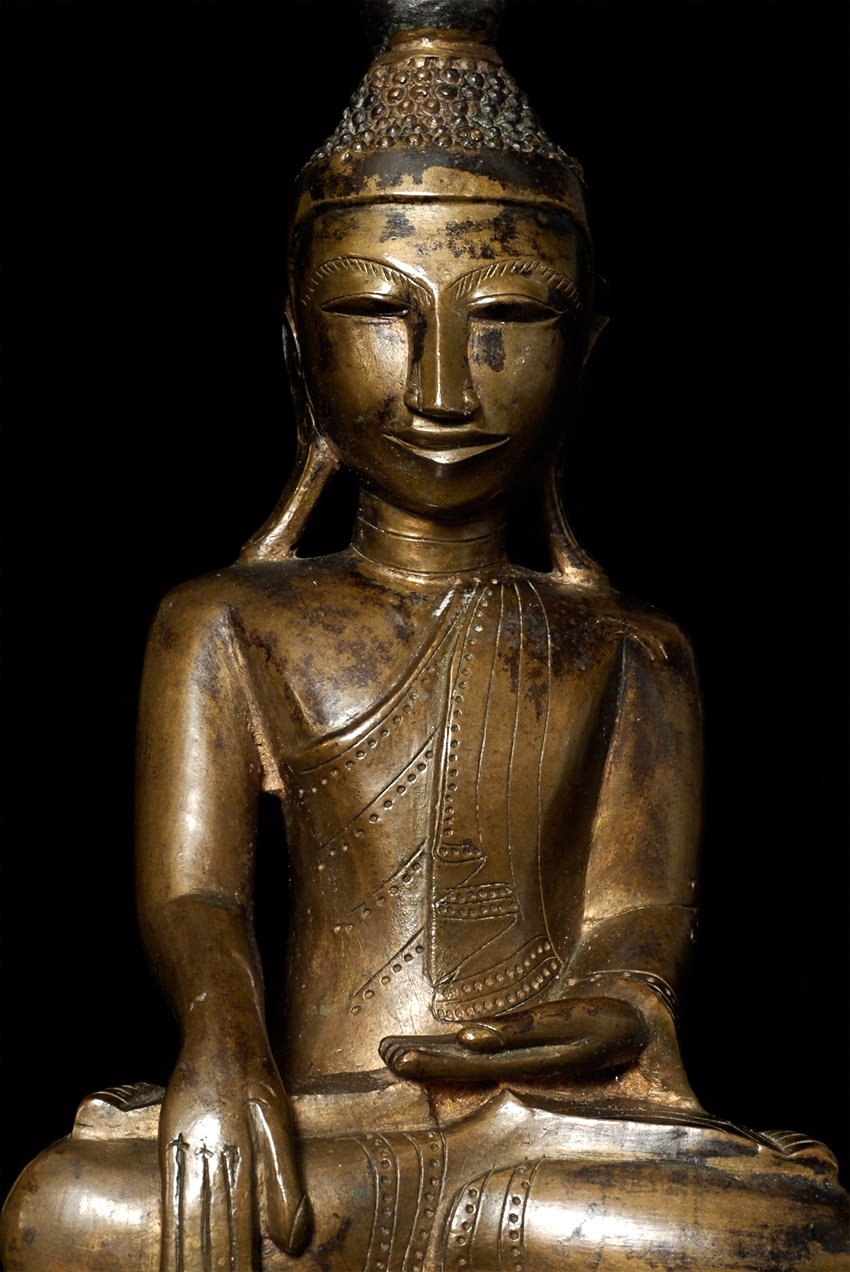 Good Burmese Shan Buddha. 7 5/8 inches tall, 9.5 inches on custom stand.